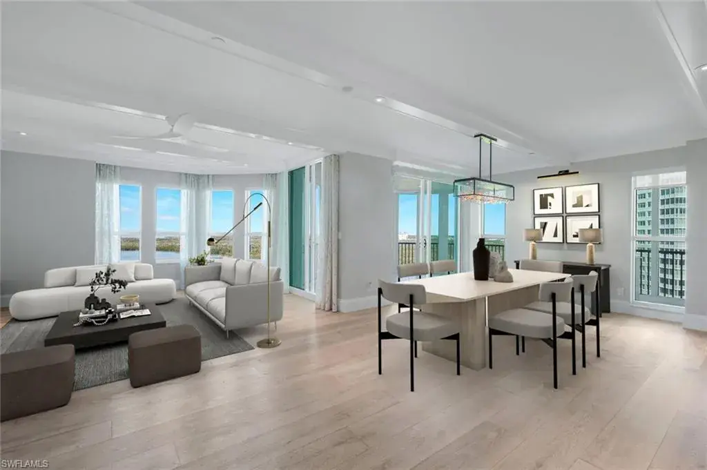 This home is equipped with automated lighting switches and a state-of-the-art surround sound system, ensuring modern convenience and entertainment. Located in The Dunes, a five-star resort-style community, residents have access to pools, a restaurant, Tiki bar, state-of-the-art fitness center, and tennis courts with a full-time professional staff. Additionally, this residence includes the availability of transferable access to the exclusive Floridian Beach Club. The Floridian shuttle picks you up at your lobby and in a few minutes you are at award-winning Vanderbilt Beach. The Floridian features a bar and restaurant, pool, beach chairs, umbrellas, towels and beach side service. And, the sunsets are incredible! Your friends and family won’t want to leave! This is what uncompromising coastal living is all about. You can have it all with this gorgeous residence at the 5 Star Resort Community of The Dunes.