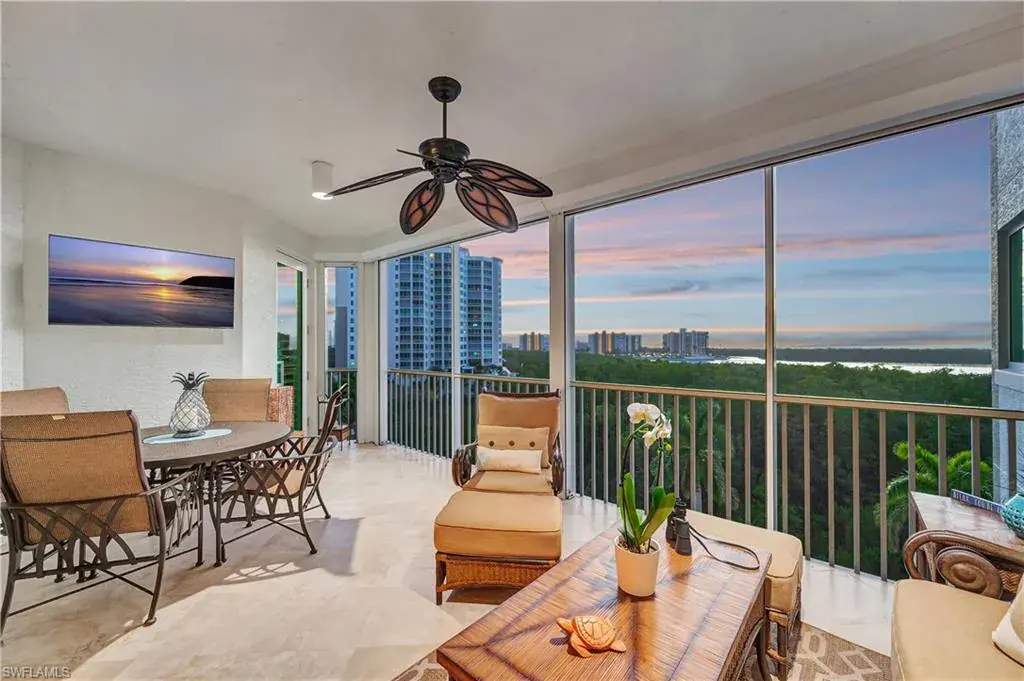 The Grande Geneva is the youngest building set high on The Dunes property. Top of the Class! Enjoy the endless views and vistas from the lanai, high above the trees and overlooking the gulf and bay. Bring on the calm! The feeling you’ll get basking in the sunsets from this luxury condominium is truly indescribable. 3050 Total SF. Three bedrooms, one-of-a-kind office with built-ins and French doors, 3 full baths, and custom wet bar with wine chiller. You will love the extraordinary primary suite with large walk-in shower, custom closet cabinetry, and panoramic water view. Guest suites have eastern light and views of Old Collier golf course. An ideal floorplan for those looking to downsize and let go of the challenges of single home maintenance. Impressive finishes with crown molding and quality millwork, marble and wood flooring, solid wood cabinetry, timeless tilework, plantation shutters, and high-end furnishings. Natural gas for cooking, top-of-the-line appliances, and electric storm shutters are just a few reasons why you may want to make this luxury condominium at THE DUNES home. Residents in the Grande Geneva have a NEW ROOF (2024) and enjoy the convenience of 2 under-building garage spaces, extra storage, a stunning lobby, fitness center, club room for entertaining, and private pool patio and grilling area. As a member of THE DUNES, you will want to take full advantage of its resort lifestyle amenities – full dining at THE CLUB, known for its exceptional cuisine, poolside food and beverage service, tropical pool and waterfall, fully staffed tennis facility, pickleball, and state-of-the-art fitness facility. BONUS: Optional membership in the exclusive Floridian Club with its private beachside restaurant and bar, complimentary transportation, beach chaise lounges, towels, umbrellas and a full calendar of events and barbecues! The Dunes of Naples is nestled in a quiet corner of Naples in the Vanderbilt Beach neighborhood near Delnor Wiggins Pass Beach Park, prestigious golf courses, The Mercato, Whole Foods, and The Capital Grille. Easy access for biking, boating and kayaking. Tremendous value for The Grande Preserve, like NEW building, five star amenities, spectacular views and a private beach club opportunity. One of the Best Homes of Naples, with Highly Rated Amenities. Come and fall in love!