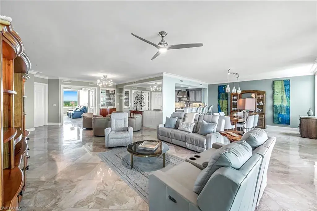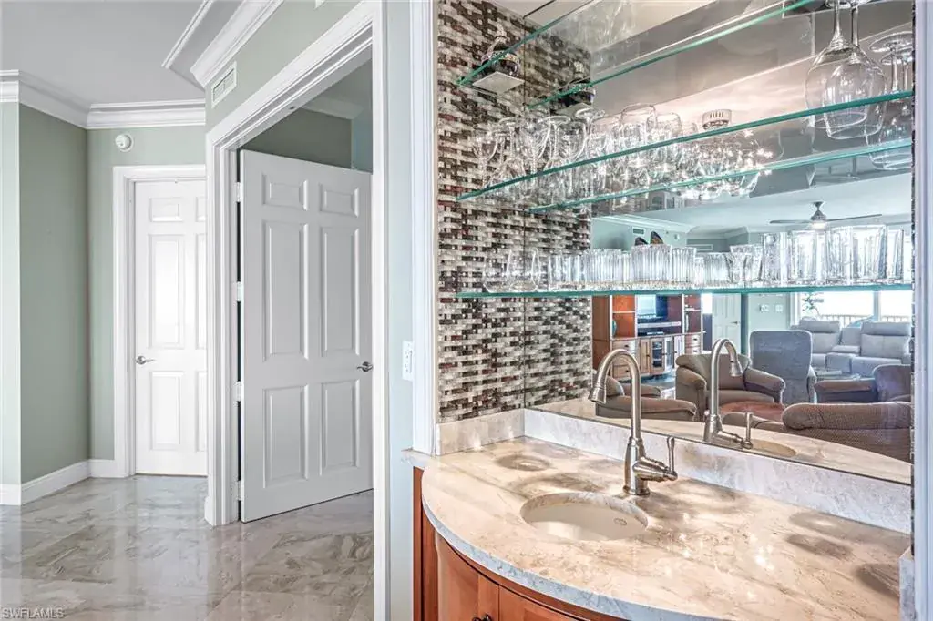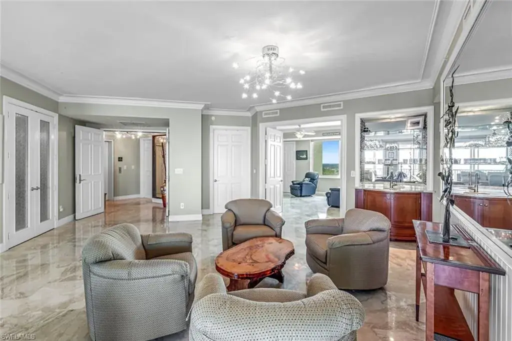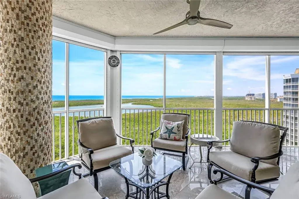 Rarely available 03 residence located in the Grande Phoenician. This luxurious sky home comes with a private Cabana. Enjoy the serene views of Turkey Bay, The Gulf and stunning sunsets. This spacious residence is in a gated tower with luxurious amenities and walking distance to one of Southwest Florida’s most stunning beaches. Complete with ceiling heights of over 9 feet, a gourmet kitchen featuring a gas cooktop, quartz countertops, decorative stainless -steel side-by-side refrigerator, an under counter wine cooler, a large primary suite and a guest primary with an ensuite. The elevator opens directly into your spacious foyer. According to the developer