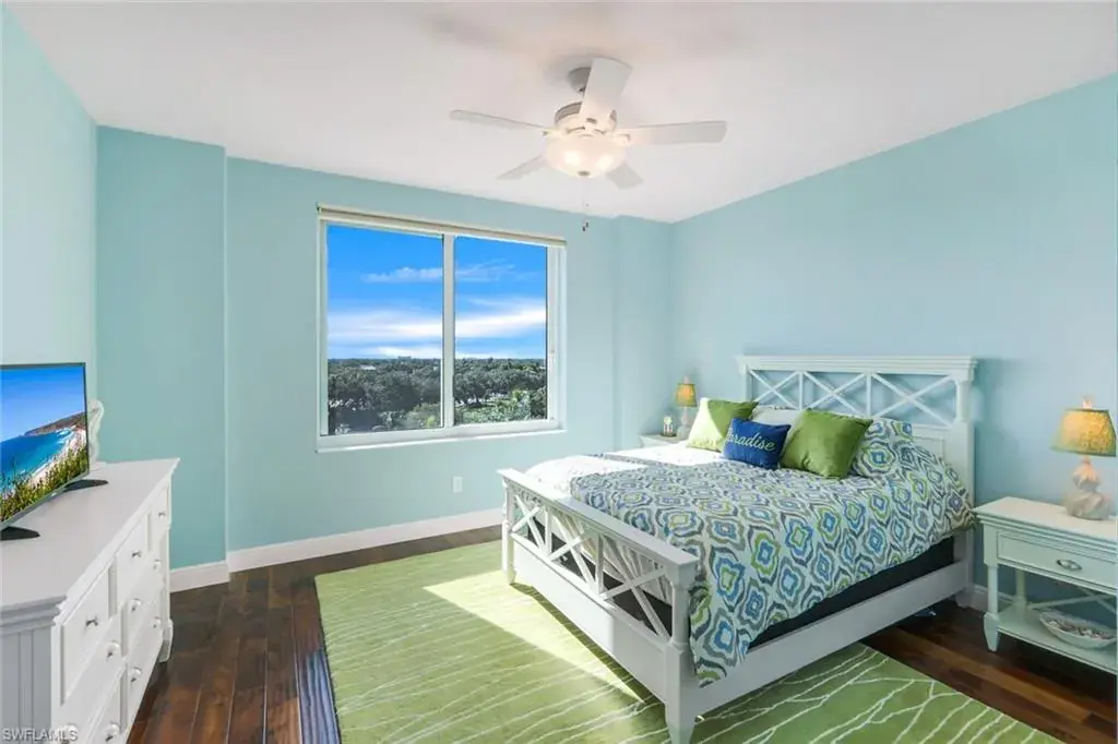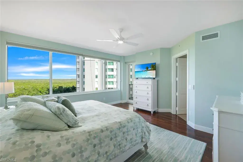 The gourmet kitchen, ideal for the modern chef, showcases a premium gas cooktop, stainless steel appliances, and a wine cooler—perfect for entertaining or unwinding in style. Step onto the spacious lanai and take in breathtaking Gulf views, the ultimate setting for enjoying Naples’ famous sunsets. Panoramic vistas span the Gulf of Mexico, Captiva and Sanibel Islands, and the scenic Old Collier Golf Course, offering a backdrop of serene beauty.