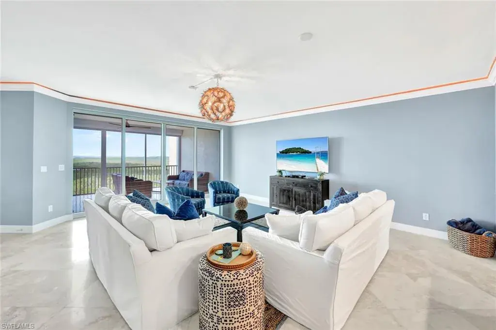 Step out of your private elevator into this beautiful Grande Phoenician residence and be greeted with forever views of Turkey Bay and sunsets over the Gulf. With 3 bedrooms and 3 baths, this spacious nearly 2,800 sq ft condo is luxury living at its best. The renovated gourmet kitchen is perfect for entertaining with counter seating on two sides, a gas range, wine cooler, and stainless-steel appliances. The elegant dining area boasts gorgeous views of Old Collier Golf Club. The Primary Suite is an oasis of incredible water views, a spa-like master bath and spacious master closet. The Grande Phoenician features its own pool and spa, barbecue area, community room, 2 parking spaces, fitness room and concierge service. Membership in the exclusive FLORIDIAN BEACH CLUB on award-winning Vanderbilt Beach is also available for transfer. Included in your HOA dues is access to The Club at the Dunes, featuring fine dining, an indoor-outdoor restaurant, resort pool, tiki bar, world-class fitness center and staffed tennis facility. These 5 Star Resort amenities and fabulous lifestyle are why The Dunes is The Premier Coastal Resort Community in Naples. The Dunes is PET FRIENDLY! See Virtual Tour.