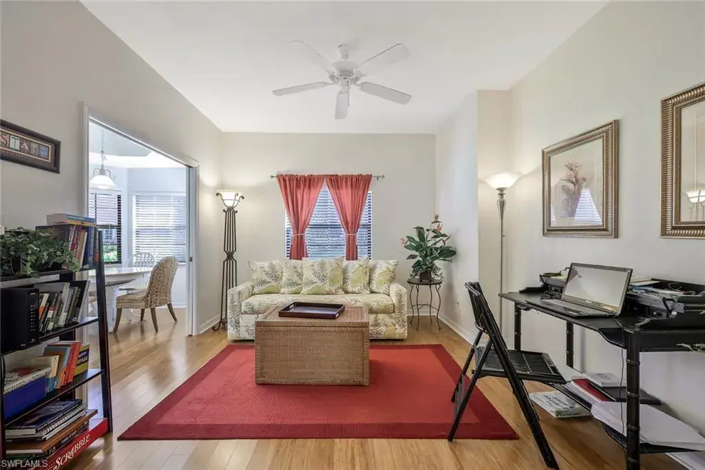 NOW WITH A BRAND NEW AIR CONDITIONER, this home provides stunning views that stretch from the well-equipped kitchen, through the expansive Great Room, and out to the screened lanai with outdoor electric grill and beverage refrigerator – a perfect space for relaxing and enjoying the scenery. The plantation shutters & rich bamboo flooring adds a touch of natural beauty, while the updated bathrooms create more modern feel. A generous den provides an ideal space for a home office or separate cozy retreat.