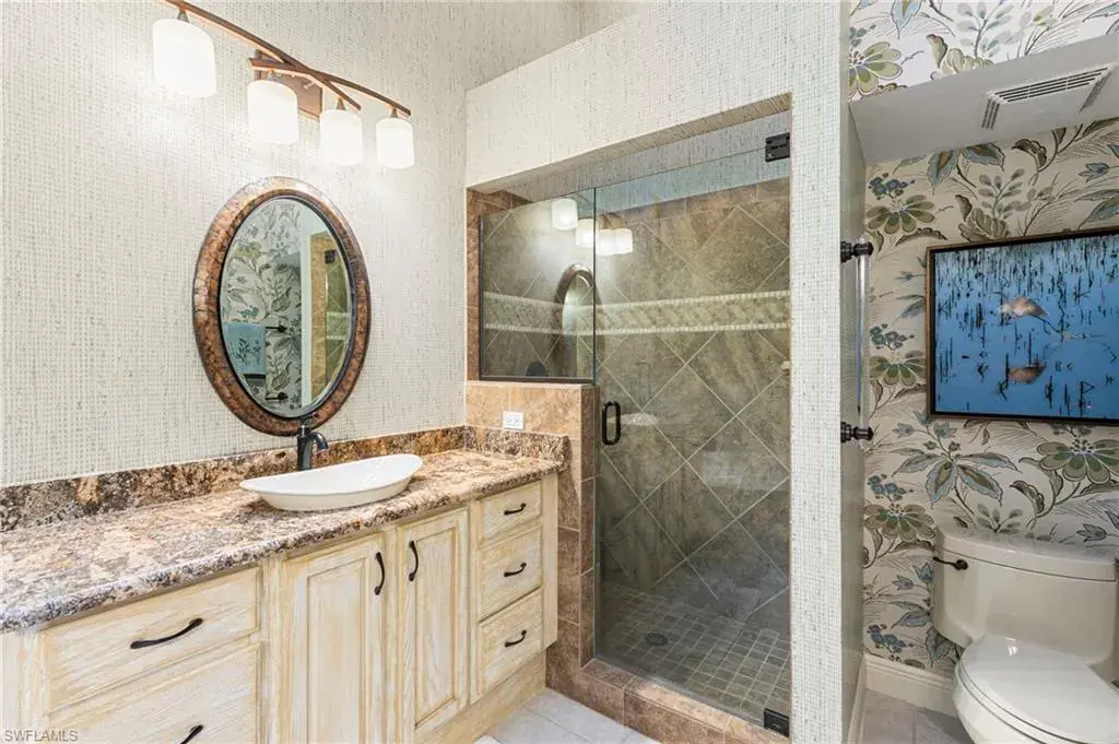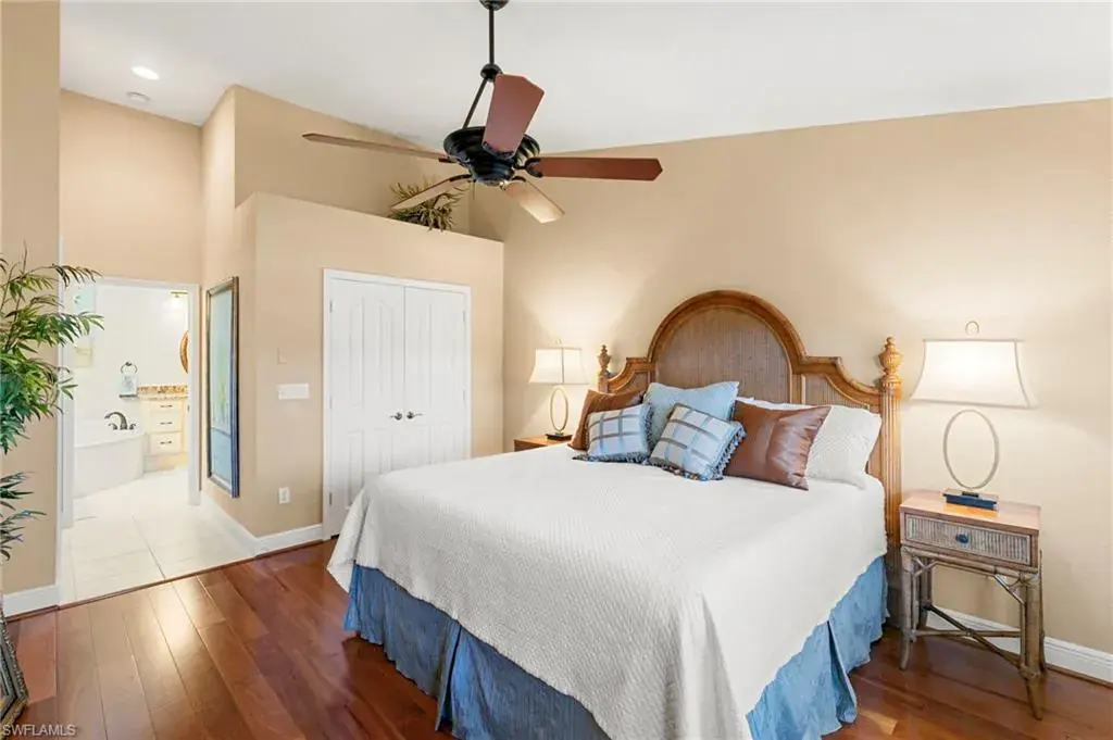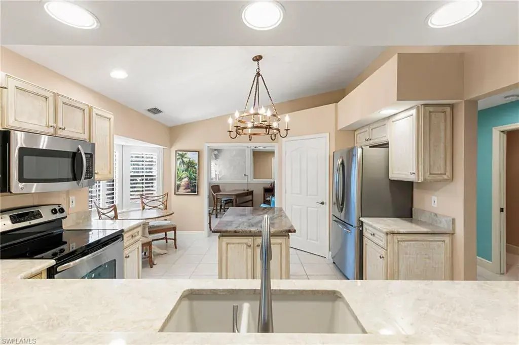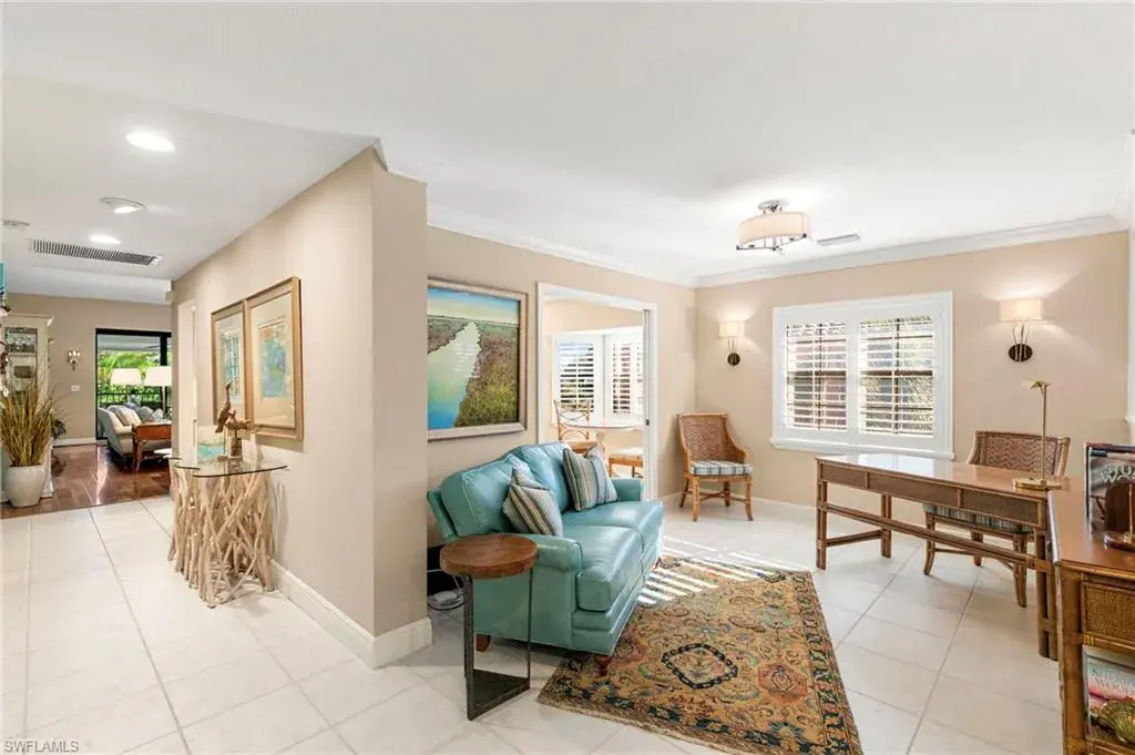 Immaculate, professionally designed, and move-in ready! This exceptional, 3-bedroom, 3-full-bath condo is being sold TURNKEY for your convenience. Located in North Naples within the desirable, active community of Grande Reserve at The Strand, this home offers a bright, open-concept floor plan with high ceilings, split bedrooms, and abundant natural light throughout. Enjoy high-quality finishes, plantation shutters, bedrooms with large closets, crown molding, and carpet-free living. Additional highlights include impact-resistant sliders, multiple pocket doors for additional privacy, epoxy garage flooring, many large storage closets, a wine refrigerator, and space available for an elevator. Relax on the spacious screened-in lanai overlooking the beautifully maintained golf course. For peace of mind, the AC and water heater were replaced in 2024, along with a new roof in 2023. Residents of The Strand enjoy a newly renovated 55,000 sqft clubhouse, three 9-hole golf courses, putting green, a resort-style pool with lap lanes, poolside dining, 7 pickleball courts, 8 tennis courts, 3 bocce courts, and a state-of-the-art fitness center completed in 2024 offering group classes as well. Ideally located near beaches, restaurants, and shopping, this home offers the perfect blend of comfort, convenience, and luxury. 5785 Grande Way #904 is truly a standout. Schedule your showing today!