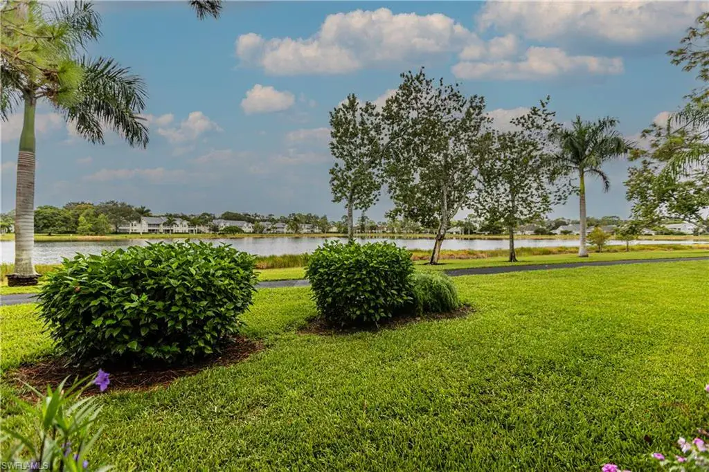 LAKE VIEW from this 2 bedroom plus den, 2 bath ground floor Greenfield Village condo in the much sought after Kings Lake community. All new high impact doors and windows throughout. Tile on the diagonal.