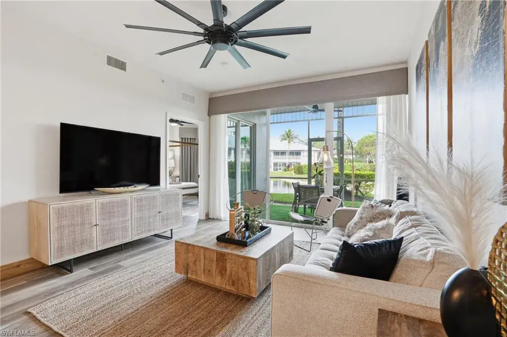 TURNKEY, FIRST FLOOR, REMODELED, 3BED/2BATH, HOME OFFICE, POOL/SPA, TENNIS/PICKLEBALL, & GOLF! This charming, professionally designed 3-bedroom, 2-bath, 1,389 sq. ft. condo located in the desirable GreenLinks neighborhood at Lely Resort truly has it all. Offering move-in-ready convenience and seamless rental capabilities, this first-floor residence features a bright and open floor plan with a spacious living and dining area, neutral finishes, and large sliding glass doors that fill the home with natural light. You’ll fall in love with the screened lanai with peaceful lake and garden views.