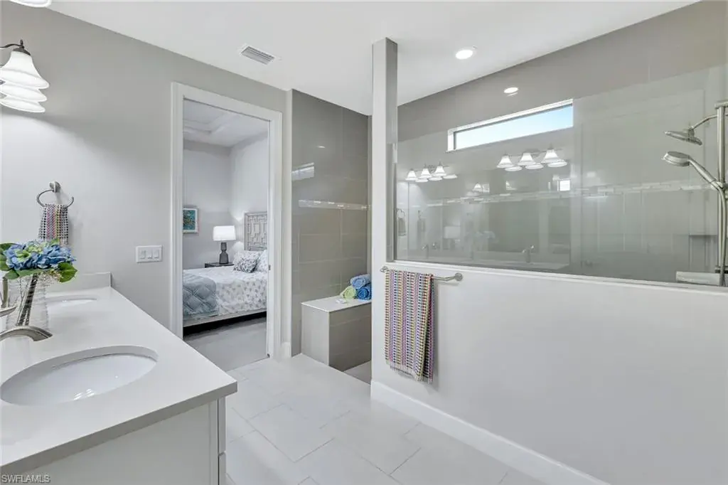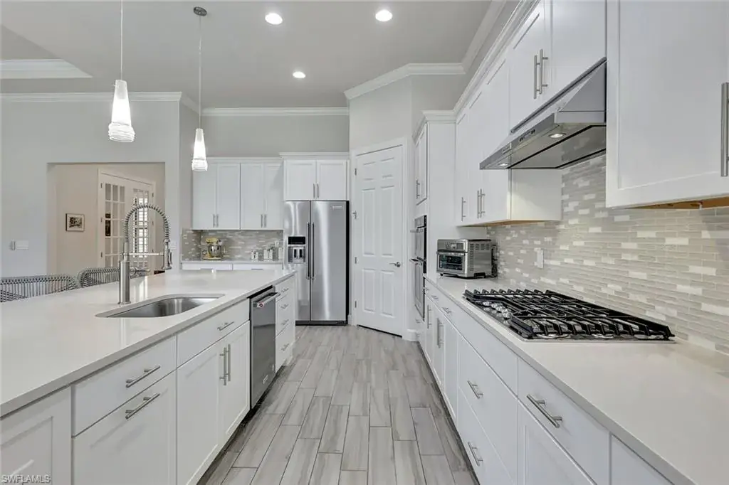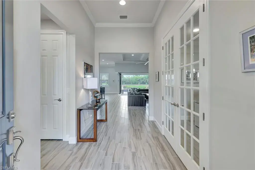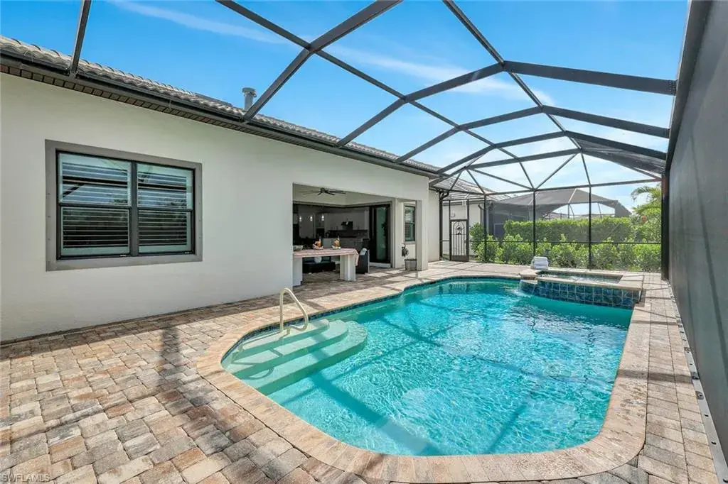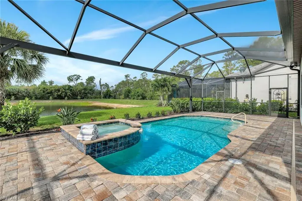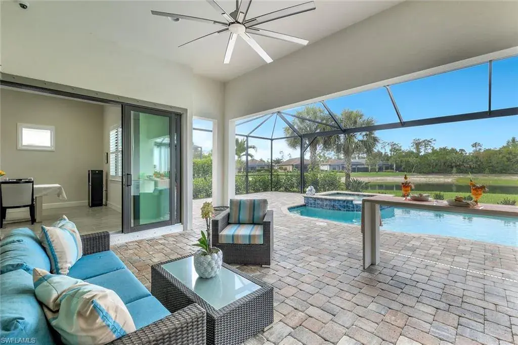 PRICE ADJUSTMENT-Luxury Living in the Heart of Greyhawk at Golf Club of the Everglades: Welcome to elevated living in one of Naples’ most prestigious gated communities—Greyhawk at Golf Club of the Everglades. Whether you’re seeking a year-round residence or a seasonal escape, this exceptional Pinnacle model delivers the perfect blend of sophistication, comfort, and resort-style amenities. Perfectly situated on a quiet cul-de-sac with an oversized paver driveway, this home impresses from the moment you arrive. Tucked away on a premium southern-exposure lot, enjoy sweeping lake views and a serene sense of privacy. The extended, covered lanai is a true outdoor oasis—complete with a panoramic screen enclosure, heated saltwater pool and spa, and a fully equipped, built-in outdoor kitchen perfect for dining and entertaining. Inside, this thoughtfully designed home showcases a highly functional, open-concept layout with elegant designer finishes throughout. With 3 spacious bedrooms, 3 full baths, a dedicated home office with French doors and custom built-ins, and a formal dining space, there’s room for everyone and every occasion. The chef’s kitchen is a showstopper—featuring upgraded cabinetry, high-end stainless steel gas appliances, a generous center island with bar seating, and a walk-in pantry fitted with a custom organizer. The primary suite is a peaceful retreat with stunning lake views, an oversized walk-in closet, and a walk-in shower and built-in bench seating. Additional upgrades include plantation shutters, crown molding, coffered ceilings, volume ceilings, zero-corner doors to lanai, and a whole-house Kinetico water filtration system. Even the utility spaces have been elevated—with a spacious laundry room offering abundant cabinetry, and a 3-car garage complete with built-in storage systems to keep everything organized. Living in Greyhawk means access to a vibrant, resort-style lifestyle. Residents enjoy low HOA fees, no CDD, social golf membership is mandatory, purchase of full golf membership is optional at the renowned 18-hole championship course. The community’s amenity-rich offerings include tennis, pickleball, bocce, a state-of-the-art fitness center, resort-style pool and lap pool, fire pit lounge areas, a Tiki bar, on-site dining, and more—all framed by three of Naples’ premier golf courses. Don’t miss your opportunity to own in this highly sought-after enclave, where luxury meets leisure, and every day feels like a vacation. Schedule your private tour today and experience the Greyhawk lifestyle for yourself.