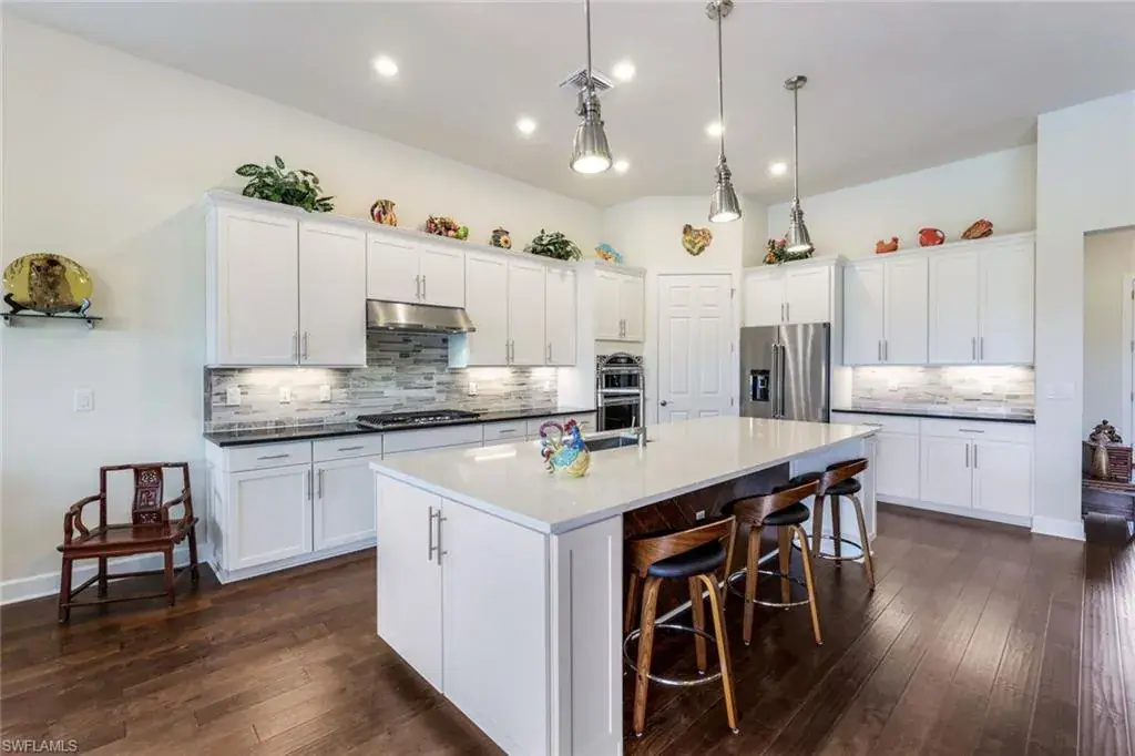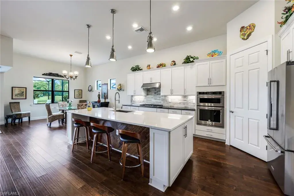Welcome to the Active Lifestyle and Golf Community of Greyhawk. This Pinnacle model features 3 BR+den with a 3 car garage. As you enter through the glass entry door, you are immediately drawn to the view of the pool and the golf course overlooking the 6th green. Entertaining is easy with the gourmet kitchen and great room, spilling over to the outdoors with the spacious lanai and heated saltwater pool with waterfall. Upgrades include: handscraped rich wood flooring, plantation shutters, custom french doors in den, upgraded kitchen cabinets, Kitchenaid SS appliances, wood inlay in great room ceiling and primary bedroom closet organizer. The home has Storm Smart Hurricane Screens on the lanai as well as a whole house generator, HURRICANE IMPACT WINDOWS. Greyhawk is a very sought after gated, resort style community with all of the amenities: heated resort style pool & spa area, indoor and outdoor bar, full restaurant, tennis, pickleball, bocce ball and fitness center. Everyone is a social member of the golf club and can golf from May through October. Greyhawk is resort living at its best. Come join the fun.