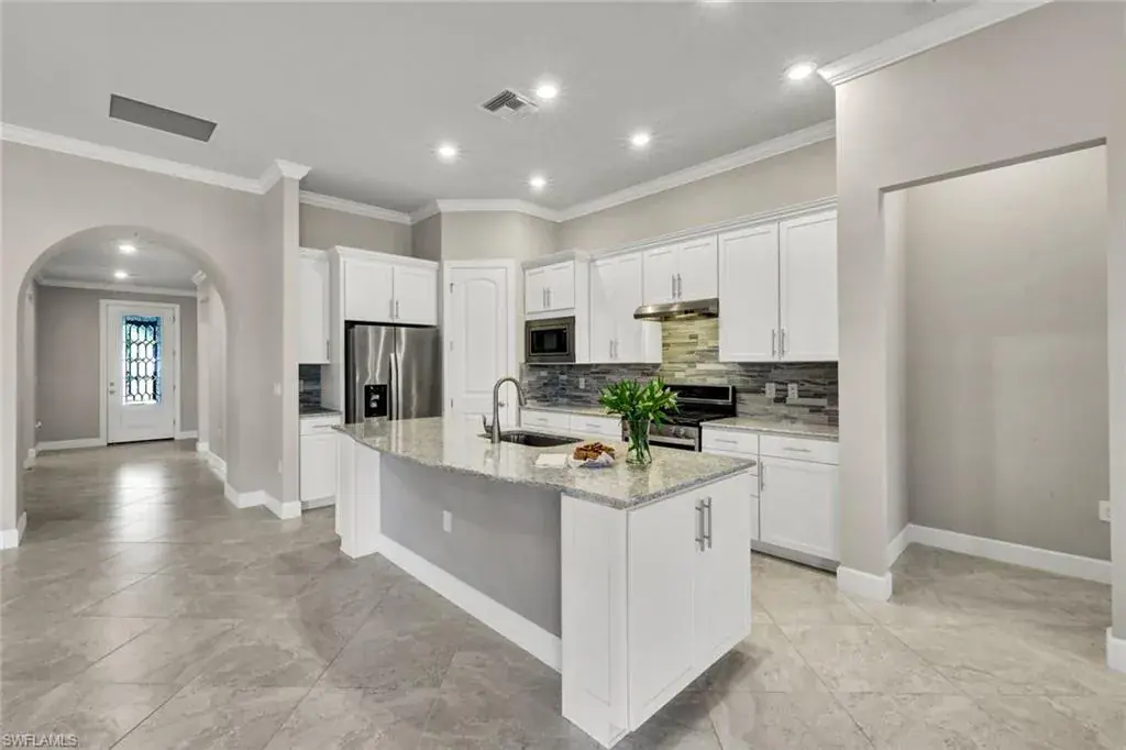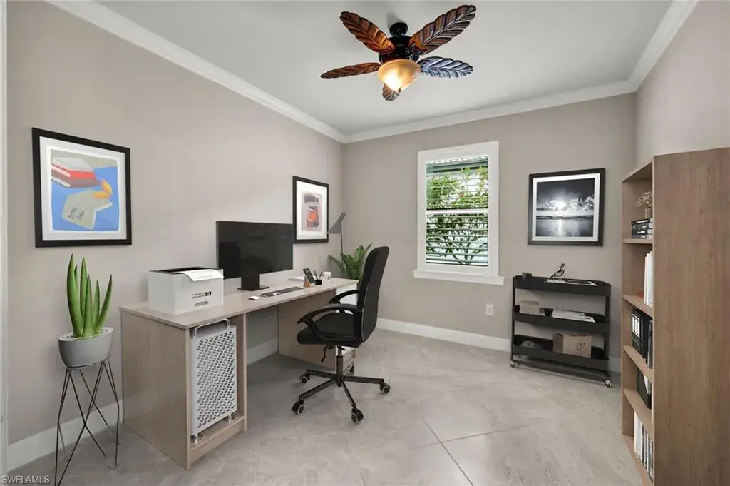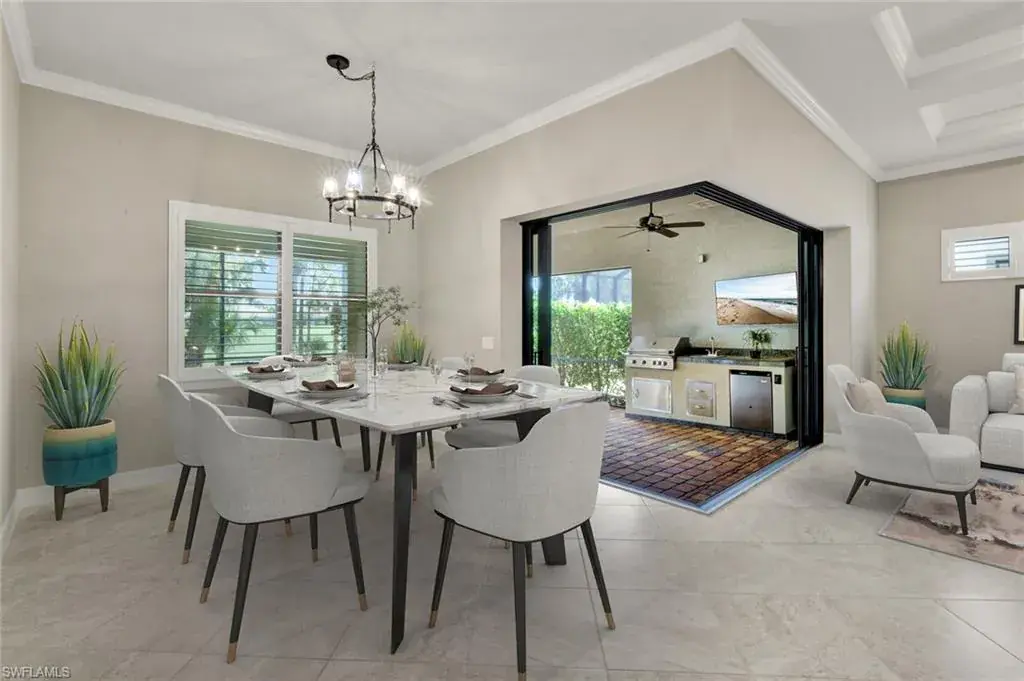 Luxury and Serenity in One of Naples’ Most Coveted Communities. Tucked away on a peaceful, tree-lined street within the exclusive Greyhawk at Golf Club of the Everglades, this elegant residence captures the essence of refined Naples living. Surrounded by pristine landscapes and world-class amenities, this home blends timeless sophistication with the relaxed charm of Florida’s resort lifestyle. Designed for both comfort and style, the popular “Summerwood” floor plan showcases an open and airy layout featuring 3 spacious bedrooms, 2 full baths, and a private study that can easily serve as a 4th bedroom or flex space. Natural light floods the interior through hurricane-impact windows and zero-corner sliding glass doors, seamlessly connecting the indoor living area to the tranquil outdoor retreat. The gourmet kitchen is a showpiece of modern design—complete with stainless steel gas appliances, a large island ideal for casual dining, and an expansive walk-in pantry. Every detail throughout the home exudes craftsmanship, from custom ceiling accents and crown molding to plantation shutters and designer finishes that add warmth and sophistication. The primary suite is a true sanctuary, offering a spa-inspired bath with soaking tub, frameless glass shower, and a beautifully organized walk-in closet. Step outside to the extended covered lanai, where a built-in outdoor kitchen and dining space invite you to unwind or entertain while enjoying peaceful views of the golf course and nature preserve beyond. Greyhawk residents enjoy an amenity-rich lifestyle with access to a private 18-hole championship golf course, tennis and pickleball courts, resort-style pool, fitness center, and on-site dining—all with no CDD fees and optional golf memberships. Discover the rare combination of luxury, location, and tranquility that defines this exquisite Naples home. Don’t miss your opportunity to live in one of the city’s most sought-after communities—schedule your private tour today.