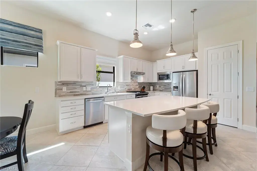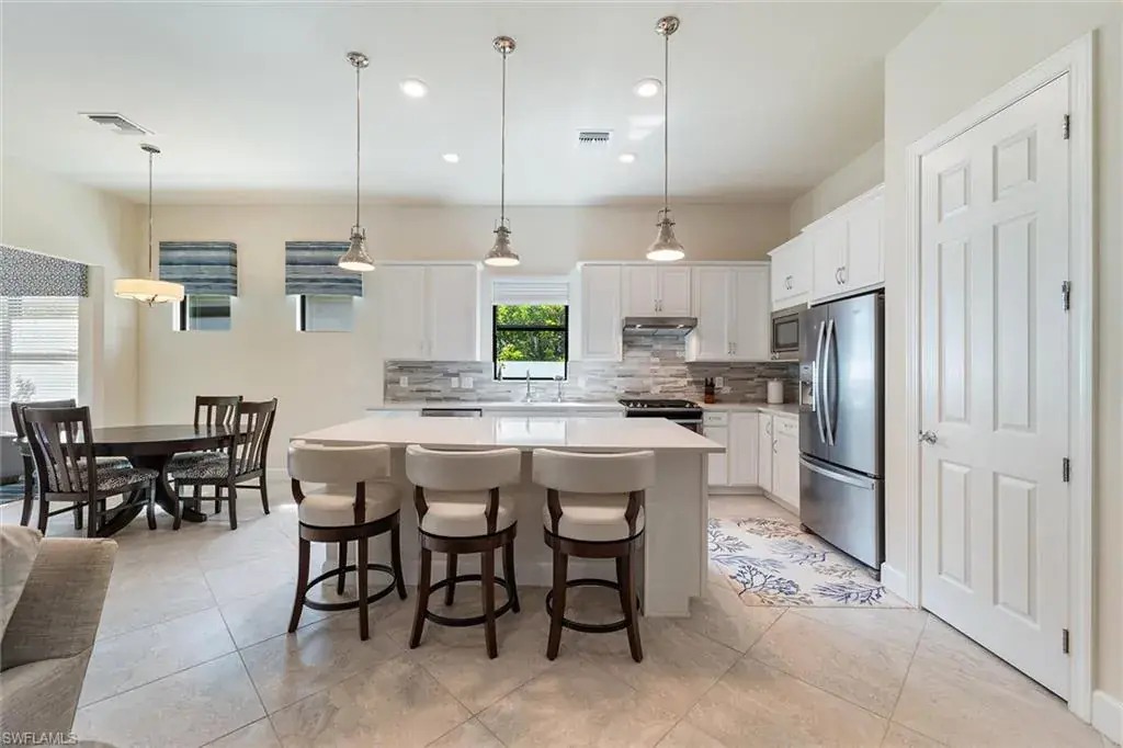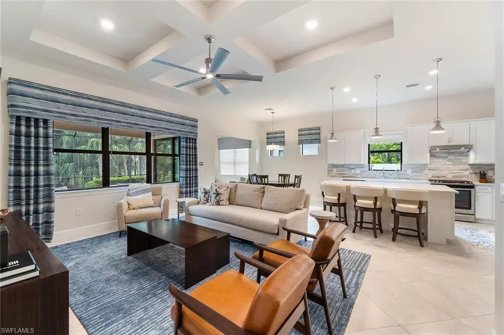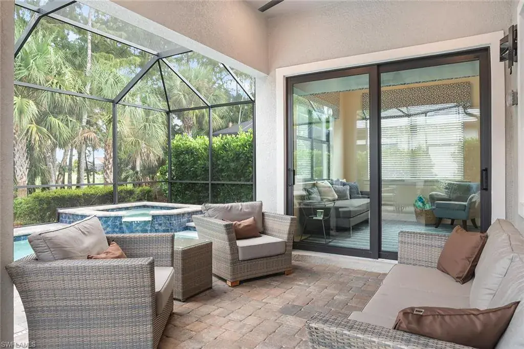 Welcome to Greyhawk at Golf Club of the Everglades. This Abbeyville residence, built in 2020, offers 1,805 square feet with two bedrooms, a den and two baths. The home includes a screened pool and spa, a two-car garage, storm-smart protection and impact glass. Interior selections feature stainless steel gas appliances, quartz countertops, tray ceilings, a sunroom, a coffee nook and a water filtration system. The Greyhawk community offers a fabulous Resort Lifestyle including: an 18-hole Championship Golf Course; a State-of-the-Art Sports Complex featuring Pickleball, Bocce, Tennis and a Pro Shop; both indoor and outdoor Fine and Casual Dining, a Tiki Bar and Fire Pit Area; a Resort-Style Heated Pool with extended Lap Lanes and Spa; a Fitness Center, Movement Studio and Card Room. Greyhawk is ideally located near numerous shops and restaurants including the fabulous Founder’s Square and is only about 13 miles from Vanderbilt Beach.