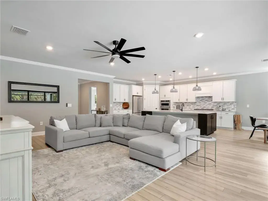 Welcome to Greyhawk at Golf Club of the Everglades, one of Naples’ most sought-after gated golf communities offering luxury living with resort-style amenities. This impressive two-story Pinnacle design features 4 bedrooms + den, 4 baths, a dedicated office, and a spacious loft, blending elegance and functionality for everyday living and entertaining. The open great room showcases abundant natural light, electrical floor outlets, and luxury vinyl flooring throughout the main living areas. A chef’s dream kitchen awaits with quartz countertops, upgraded appliances, a natural 5-burner gas range, walk-in pantry, oversized island with seating, and tall cabinetry offering both beauty and practicality.