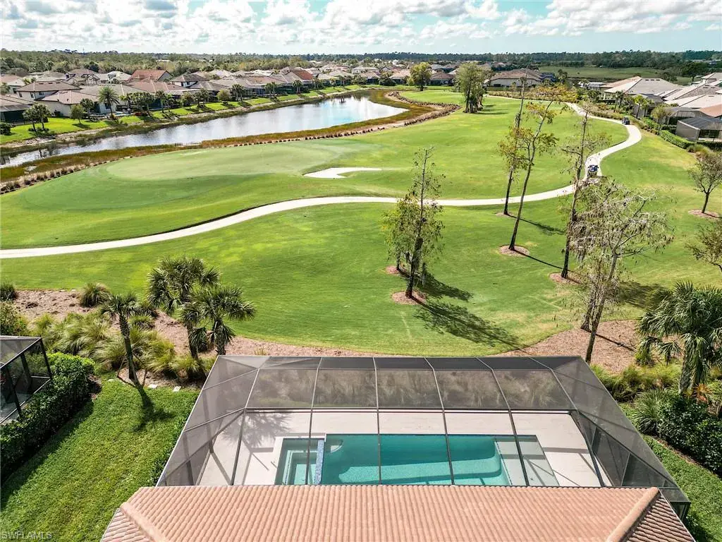 This 3 Bedroom 3-1/2 Bath + Den/office luxury single family home is located in the beautiful community of Greyhawk at Golf Club of the Everglades in North Naples. Built on an oversized lot, this home offers an interior spacious floor plan that features a patterned tray ceiling in the living room, large kitchen area w/walk-in pantry, kitchen work island & dining area overlooking the spacious lanai, pool & spa area. This home also offers a large master suite w/walk-in closet, 2 guest quarters with their own private ensuite, and a custom-built outdoor kitchen w/a gas grill — plus a most convenient pool bath just steps from the pool area. (Pool was constructed and finished in 2024!) This home also boasts a 3-stall “extended” garage to fit most any vehicle and a full home Generac Generator! Enjoy your morning coffee while watching the activity of golfers on the Club of Everglades Fairway #4 Hole and the golfers aiming for the hole on the putting green!! This home has it all — the finest “Luxury Living at Greyhawk! Amenities include the Everglades Championship Golf Course, Bocce Ball, Tennis, Pickleball, Clubhouse, Restaurants (casual & fine dining), heated pool & spa, fire pit, exercise room, & outdoor Tiki bar. A variety of shopping, dining & entertainment venues are also minutes away, including SWFL International Airport, Florida Gulf Coast University and Naples Airport.