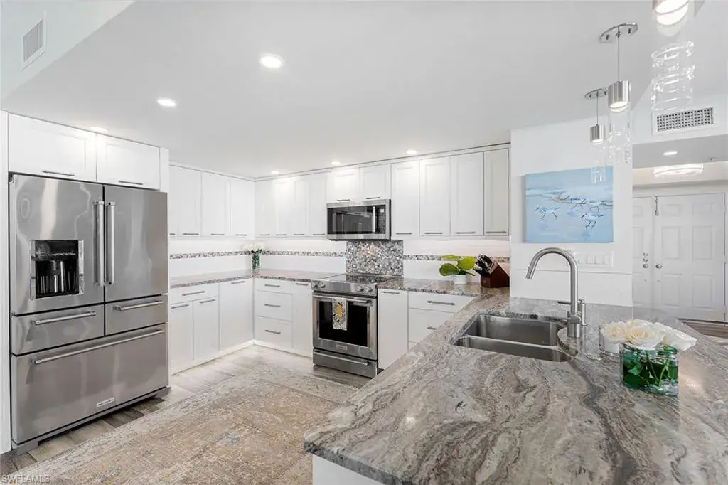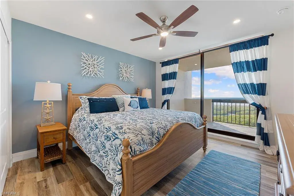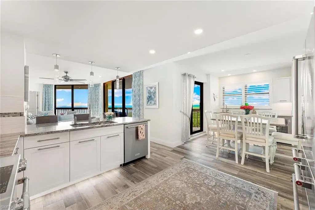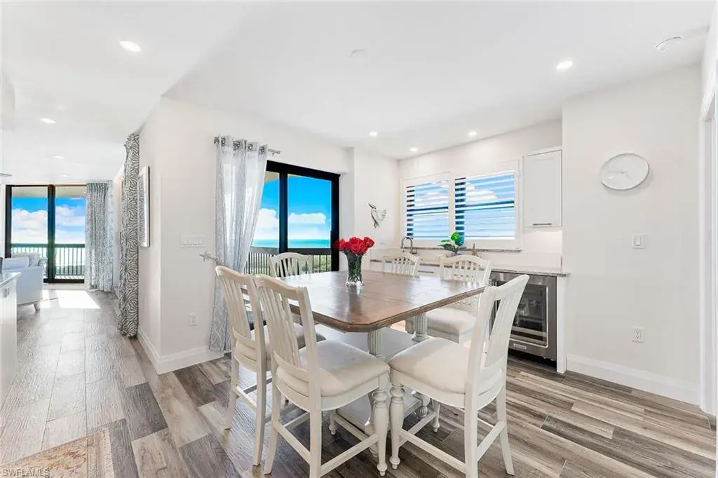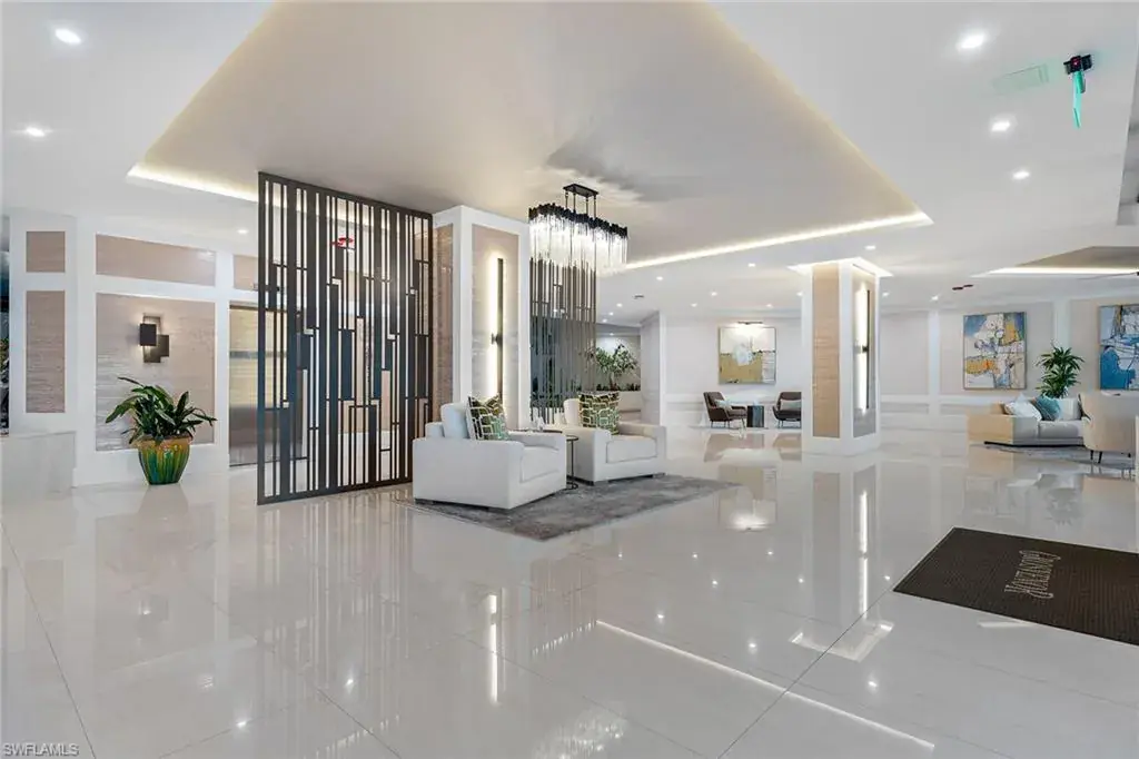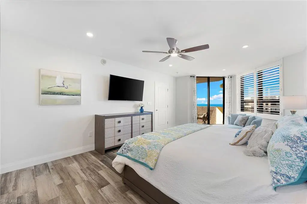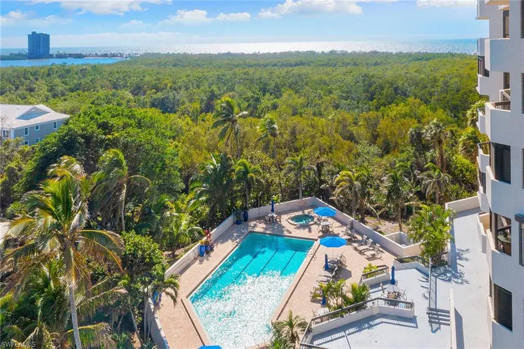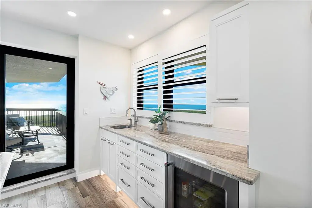 The work is done! Breathtaking 15th-floor views up to Sanibel from the sought-after 04 stack with northwest exposure, beachy vibes and a relaxing perch in the sky. This stunning high-rise retreat boasts a spacious 524-square-foot lanai with no screens ideal for soaking in sunsets, sunrises and endless gulf breezes. Remodeled and professionally designed, this move-in-ready condominium, featured in Home & Design, comes turnkey furnished for effortless luxury. New hurricane impact windows and sliders throughout provide ultimate peace of mind and unobstructed views. The den has a sleeper sofa and TV for guest or bonus room. On the berm, one of the closest buildings to private South Beach and tennis. Top-tier amenities include updated lobby, reimagined social room by EBL Interiors, secure under-building parking, bike storage, three guest suites, three elevators, lap pool with sunny pool deck, barbecue and fitness. Live the Pelican Bay dream. Exclusive private beach club with two beachfront restaurants, cabana service and miles of pristine sand. World-class tennis with 18 Har-Tru courts plus a new racquets center coming soon featuring 20 pickleball and eight tennis.