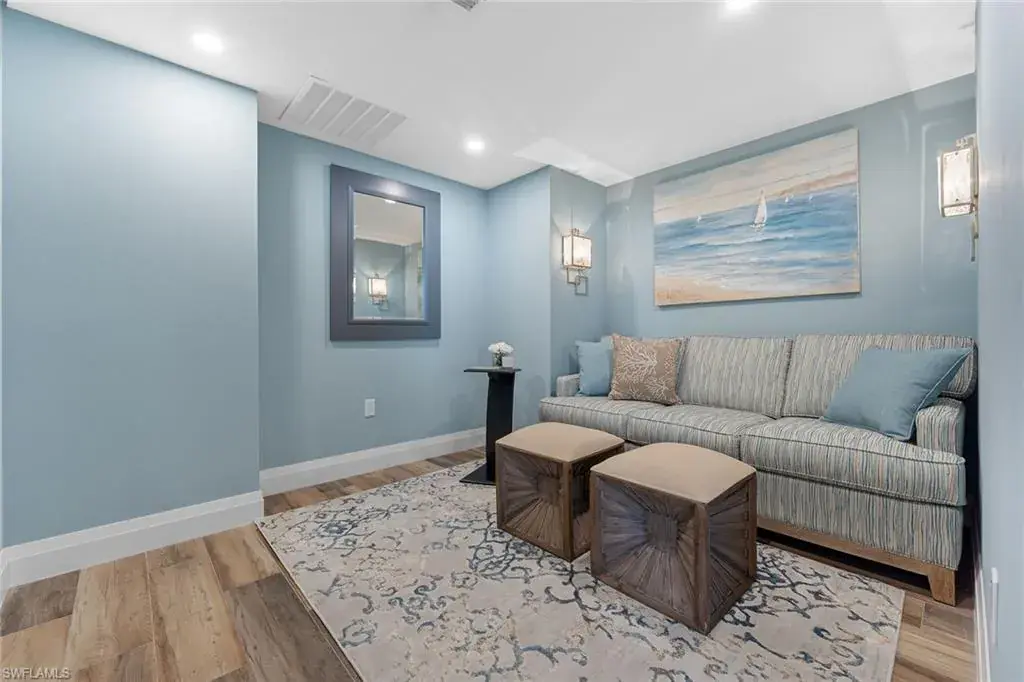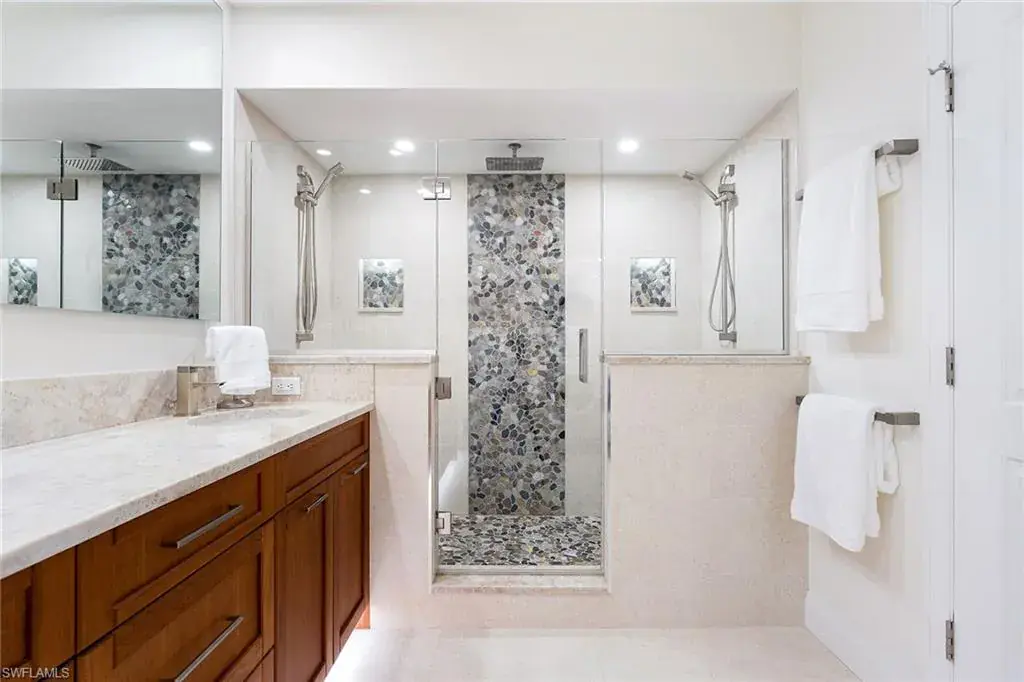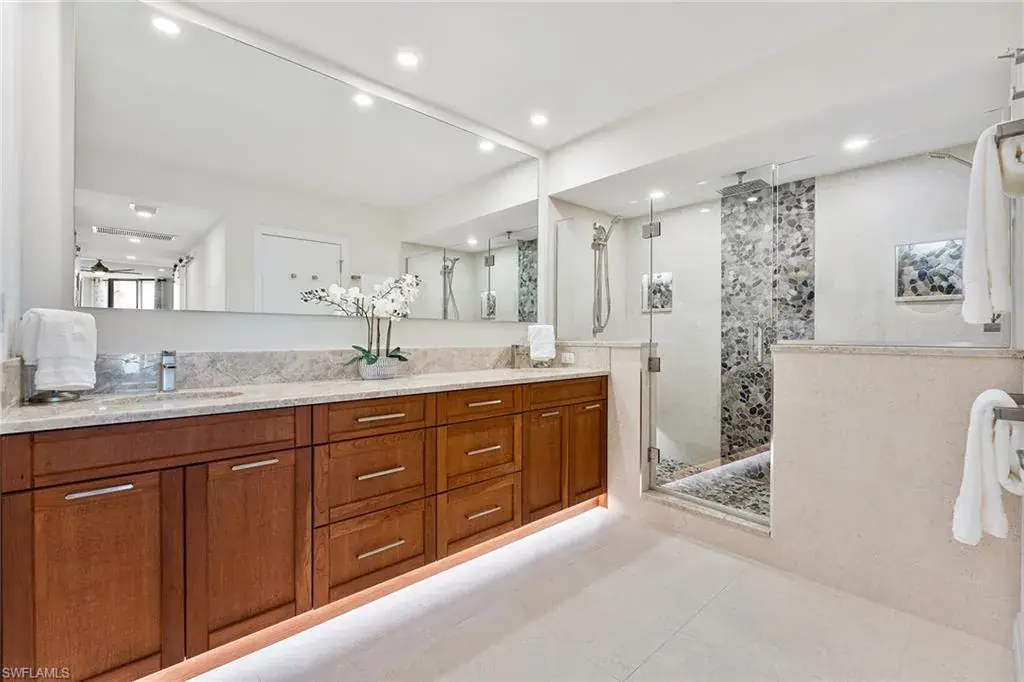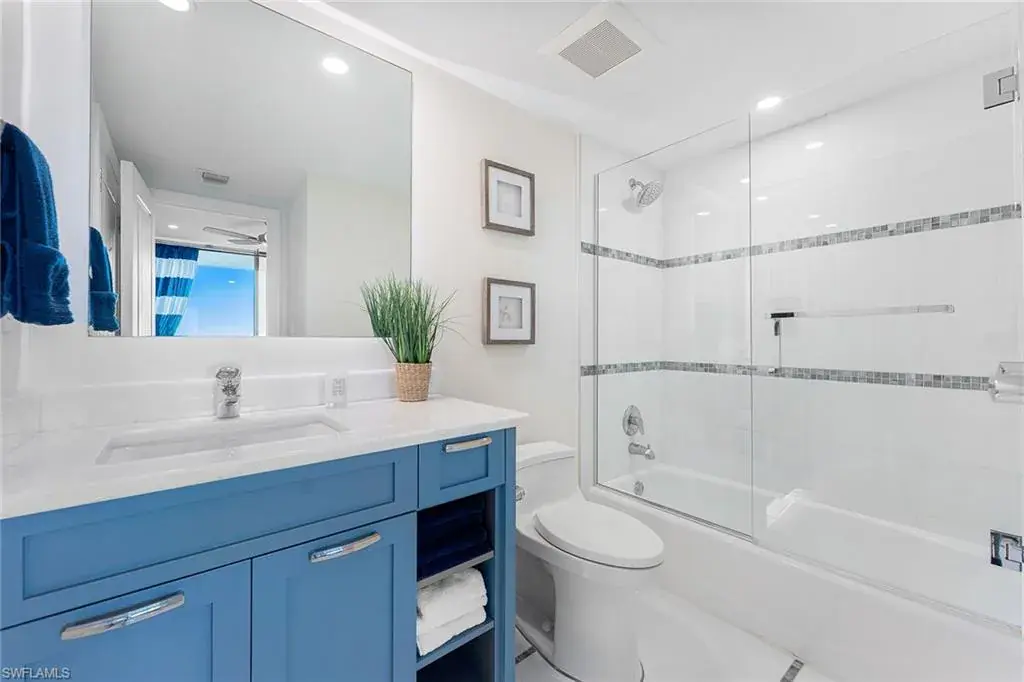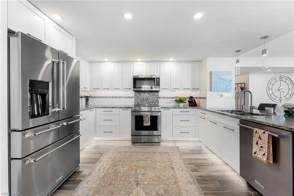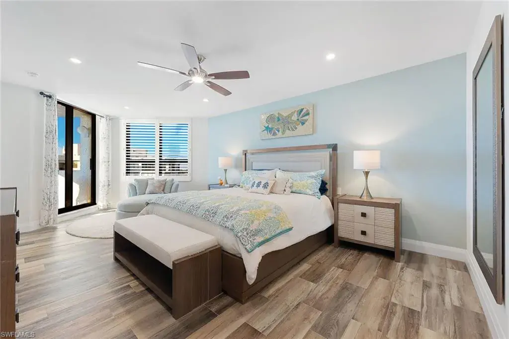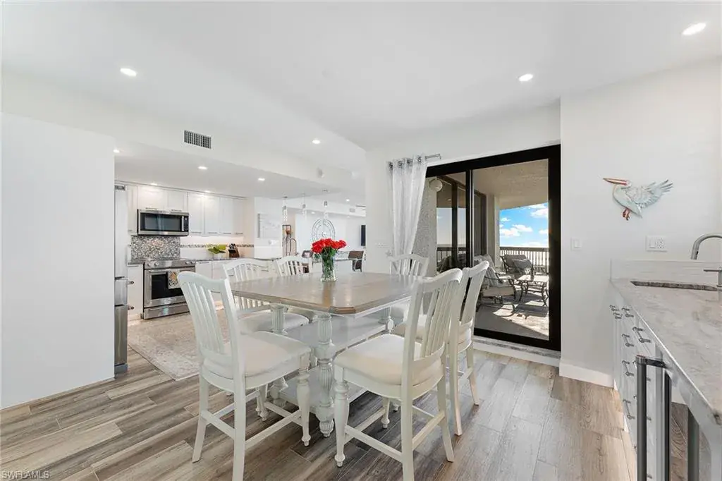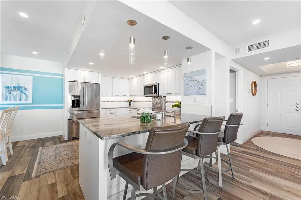 The work is done! Breathtaking 15th-floor views up to Sanibel from the sought-after 04 stack with northwest exposure, beachy vibes and a relaxing perch in the sky. This stunning high-rise retreat boasts a spacious 524-square-foot lanai with no screens ideal for soaking in sunsets, sunrises and endless gulf breezes. Remodeled and professionally designed, this move-in-ready condominium, featured in Home & Design, comes turnkey furnished for effortless luxury. New hurricane impact windows and sliders throughout provide ultimate peace of mind and unobstructed views. The den has a sleeper sofa and TV for guest or bonus room. On the berm, one of the closest buildings to private South Beach and tennis. Top-tier amenities include updated lobby, reimagined social room by EBL Interiors, secure under-building parking, bike storage, three guest suites, three elevators, lap pool with sunny pool deck, barbecue and fitness. Live the Pelican Bay dream. Exclusive private beach club with two beachfront restaurants, cabana service and miles of pristine sand. World-class tennis with 18 Har-Tru courts plus a new racquets center coming soon featuring 20 pickleball and eight tennis.