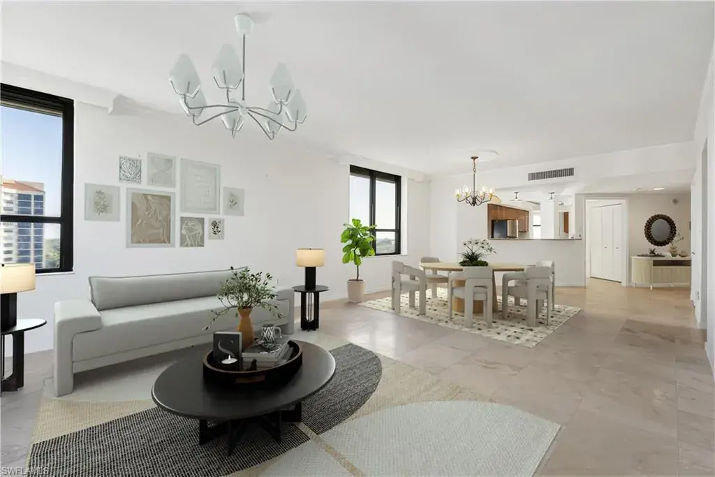 Rising majestically to the Florida sky, the 18-story Grosvenor with its 101 residences is an amenity-rich high-rise located within Pelican Bay in North Naples. Residents enjoy breathtaking panoramic views of the Estuary of Pelican Bay, Clam Pass, and the Gulf of Mexico, across 3 miles of forever-protected coastal mangrove forests, immaculate private beaches, and breathtaking nature paths. This 2,542-square-foot, three-bedroom, three-bath condo features a thoughtfully designed floor plan that balances privacy and grandeur, making it perfect for entertaining or simply relaxing as you take in breathtaking sunsets from your expansive Gulf-facing lanai. Custom cabinetry enhances the den and entertainment area, offering both functionality and style. Residents enjoy a host of luxurious amenities, including a resort-style pool, underground parking, and three rentable guest suites for visiting friends and family. With this stunning residence as your canvas, you can bring your personal style to life and create a home that is truly your own.
