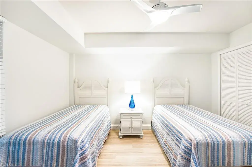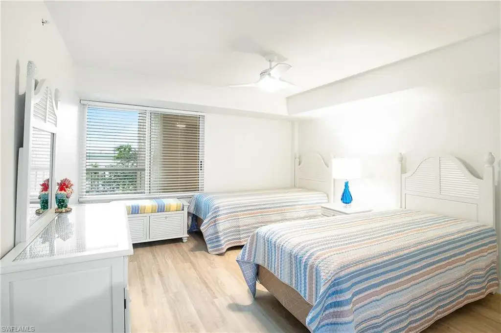Attention Investors!Rented for 3 Months in the 2026 Season -Income Already Secured!LOWEST-PRICED 3-BEDROOM CONDO IN THE AREA – NO STORM DAMAGE, NO SPECIAL ASSESSMENTS! Discover exceptional value and prime location with this beautifully updated 3-bedroom, 2-bath condo in North Naples. Offering serene southwest exposure, enjoy peaceful views of the tennis courts and partial bay views from multiple rooms. Just a short walk to the beach, this move-in-ready residence features all-new flooring, fresh paint, and a fully renovated kitchen complete with soft-close cabinetry, quartz countertops, and a designer backsplash. The spacious primary suite boasts a remodeled en-suite bath with quartz counters, while the third bedroom offers versatility as a home office with a built-in Murphy bed. Both bathrooms have been tastefully upgraded, and the screened patio provides a perfect space to relax and enjoy the coastal breeze.With 3 months of seasonal rental already in place for 2026, this property is an outstanding investment opportunity. Ideally located near top dining, shopping, and nightly sunset strolls along the beach—this is coastal living at its finest, all at an unbeatable price in today’s market.