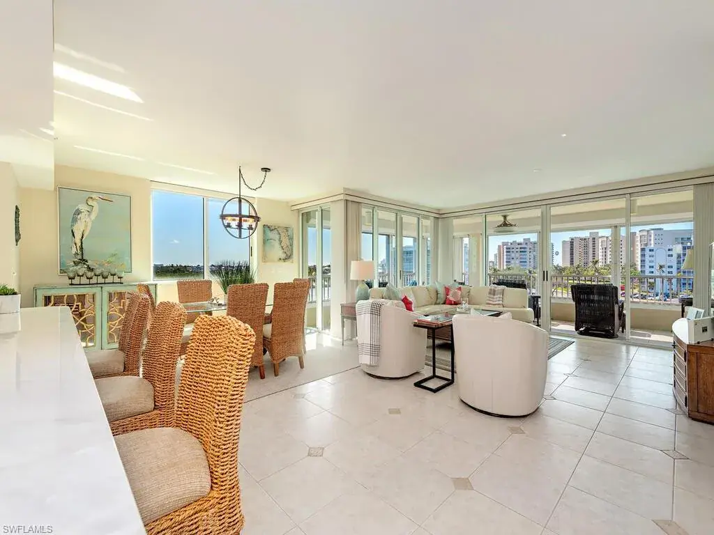 STUNNING MOVE-IN-READY CONDO VANDERBILT BEACH – NORTH NAPLES! This exclusive Move-In Ready Two-Bedroom End-Unit Condominium with Stunning Gulf of Mexico, Vanderbilt Channel, and Marina Views offers a magnificent renovation with nearly $100K in Upgrades throughout, including a fabulous remodeled chef’s kitchen with high-end stainless appliances opening to an expansive great room and dining room, completely remodeled baths featuring elegant marble tile, and so much more! To accommodate your desire for magnificent year-round views, from inspiring sunrises to beautiful sunsets, the privacy of this end-unit with its expansive wraparound balcony and windows provides a glow of natural light, creating an open and airy feel, welcoming you home to your paradise. Located in the most coveted 01 stack in the highly desirable Gulf Breeze condominiums with Low HOA Fees, Unit 401 offers an unparalleled Naples lifestyle within walking distance of Vanderbilt Beach and Delnor Wiggins Pass and dining opportunities at famous Naples restaurants right on the beach. Perched on the fourth floor, your new home boasts breathtaking views of the Vanderbilt Channel where you can watch dolphins swim, the alluring blue waters of the Gulf of Mexico, and the beautifully illuminated marina at night. For added convenience, the unit features a Murphy bed, providing extra sleeping accommodations and making it ideal for hosting guests. Just a three-minute stroll to one of Florida’s most beautiful beaches, this property also includes access to exceptional amenities with a community pool, pickleball, and tennis courts just for the homeowners in the Gulf Breeze community. Being offered turnkey and fully furnished, this one-of-a-kind home must be seen in person to appreciate its charm, beauty, and unique features truly. Schedule your private showing today and experience the best of Naples living!
