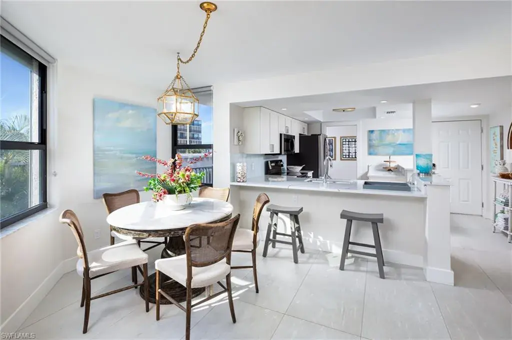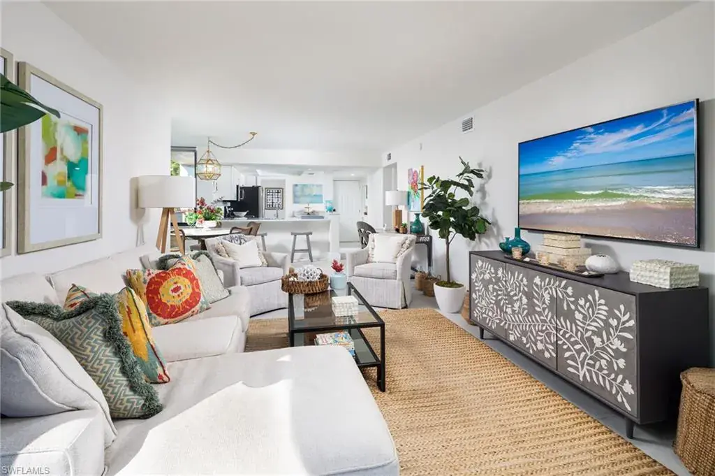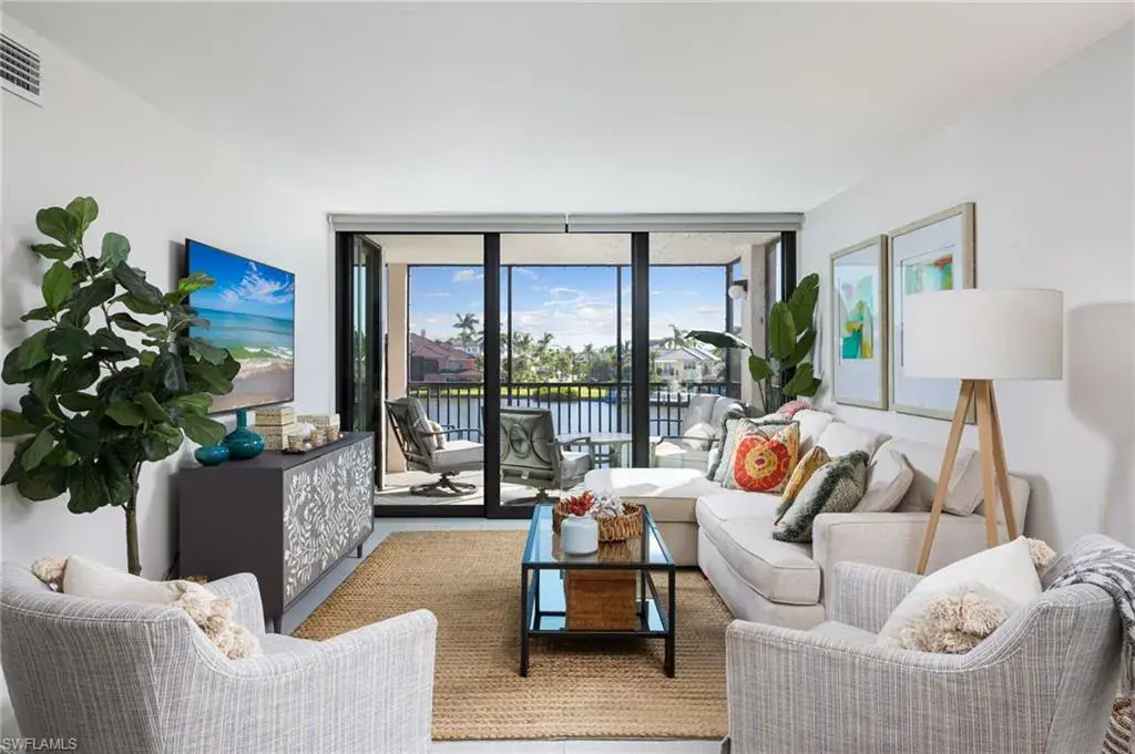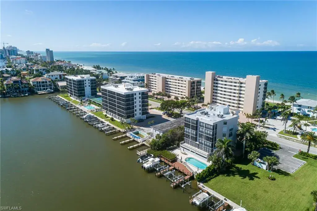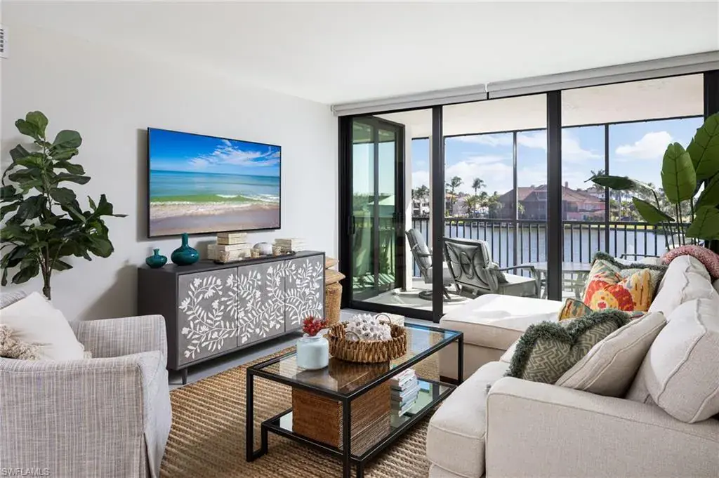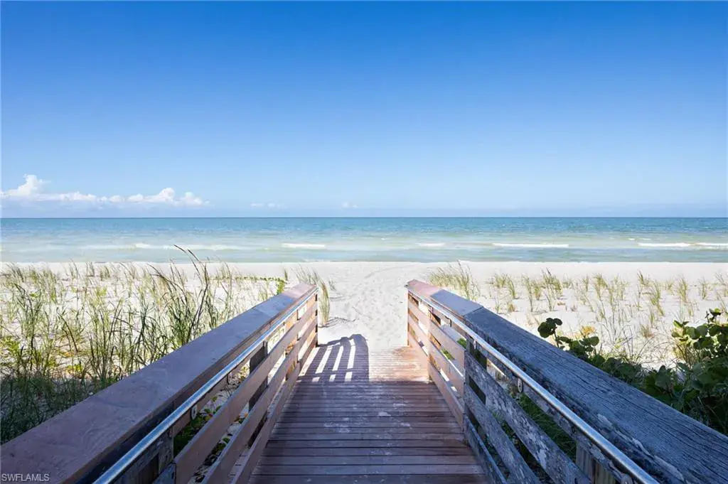Steps from Delnor Wiggins State Park—recently named one of the Top Beaches in the U.S. by Dr. Beach—this Bayfront Coastal Retreat is the epitome of coastal living! Beautifully renovated end-unit featuring 2 bedrooms, 2 bathrooms, and a versatile den/office that can easily serve as a third bedroom. Sun-drenched interiors showcase sweeping bay views with glimpses of the Gulf, reflecting soft hues of sky, turquoise waters, and sandy shores throughout.