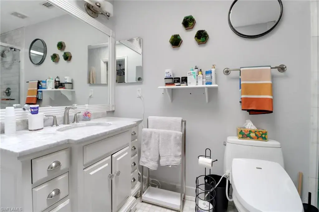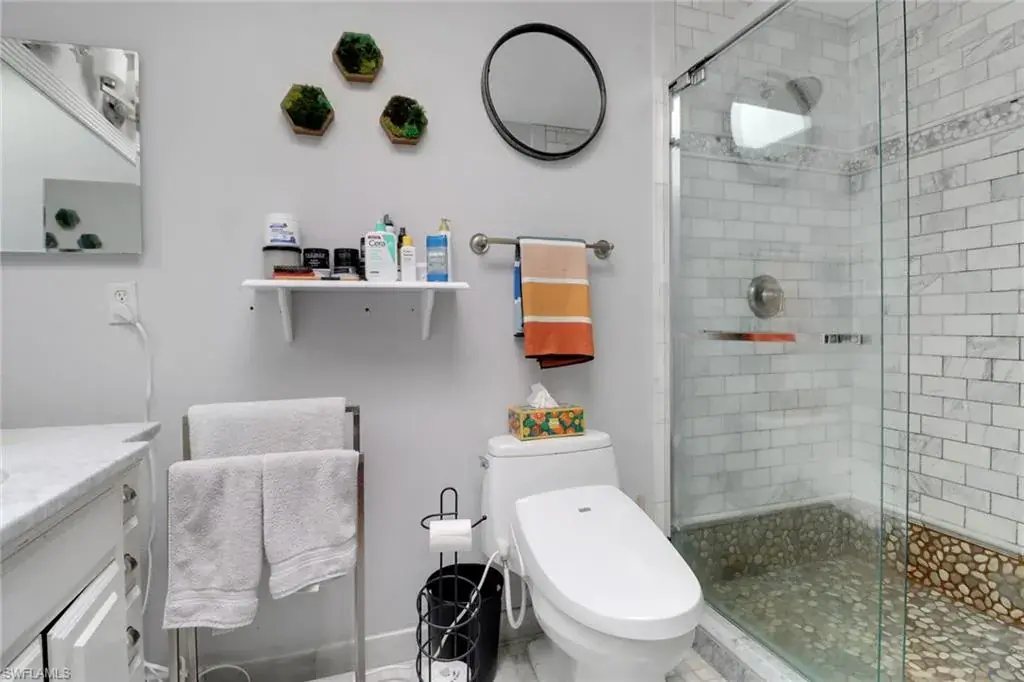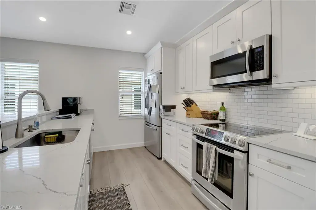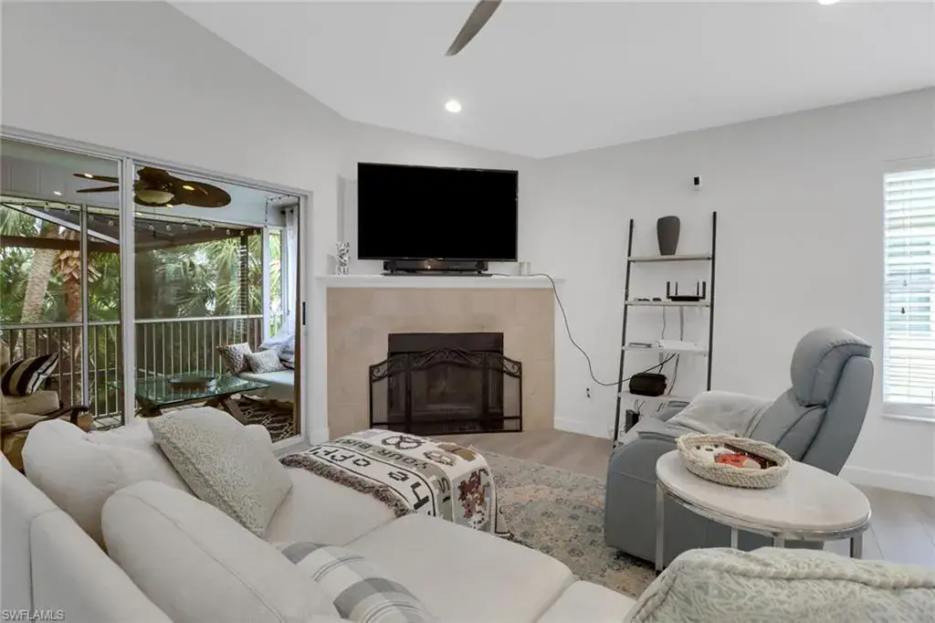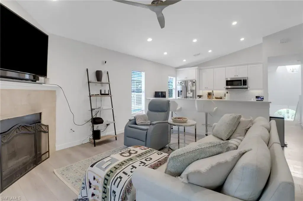 Welcome to Gulf Harbor, Naples’ most desirable direct access boating communities! This stunning Key West-style home offers the perfect blend of coastal charm, modern updates, and an exceptional value. Featuring 3 bedrooms, 3 baths, and a 2-car garage, this spacious pool home provides an ideal setting for vacation getaways, rental income, or year-round living. Best of all, with NO HOA fees, the possibilities are endless. The well-designed, split-bedroom floor plan offers privacy and comfort, with 3 bedrooms and 2 bathrooms located on the second floor. The main living area boasts soaring vaulted ceilings, a cozy wood-burning fireplace, and a screened-in porch that opens to a tropical, fully fenced pool lanai area—perfect for enjoying the outdoors in privacy. Recent updates elevate the home with a fresh, modern coastal vibe. Luxury vinyl flooring flows throughout, complemented by white kitchen cabinetry, sleek quartz countertops, stainless steel appliances, and stylish custom lighting. The second-floor porch features new decking, and the pool area is enhanced by a custom pool, newer screen enclosure, and a concrete hot tub pad for ultimate relaxation. Eco-conscious buyers will appreciate the solar panels, which significantly reduce your monthly energy bills. The newer metal roof, and brick paved driveway adds durability and peace of mind. This North Naples location is less than a mile to the Gulf of America, Publix, fine dining and more. Here’s your chance to own this exceptional property in a prime location.