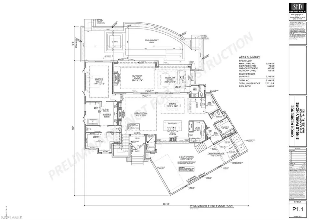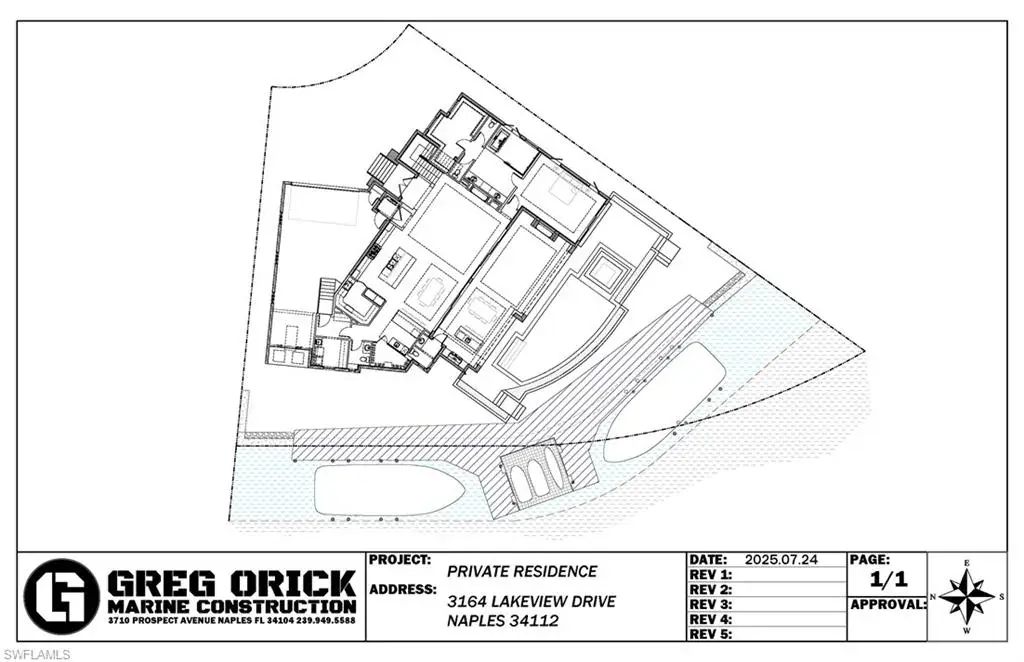 Included with the property are preliminary architectural plans for a stunning two-story coastal residence. The proposed home showcases expansive water views, a three-car garage, a pool and spa, and generous lanai spaces designed for seamless indoor-outdoor living. For those seeking a custom design, the lot’s spacious layout offers endless potential to create your own waterfront masterpiece.