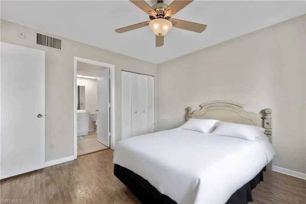 Beautifully updated 2BR/2BA third-floor condo in the sought-after Gulf Winds East community—ideally located between Marco Island and downtown Naples, with quick access to world-famous beaches, shopping, dining, and medical facilities. This turnkey furnished unit offers serene lake and tennis court views from the screened lanai, featuring electric storm shutters for added peace of mind. Recent updates include a newer kitchen, impact windows, 2021 A/C, new dishwasher, updated bath vanities, and a mix of laminate, vinyl, and tile flooring throughout. Gulf Winds East offers excellent amenities including tennis, pickleball, bocce, heated pool with spa, and a chickee hut. Low-maintenance living with strong rental potential makes this a great choice for investors, snowbirds, or full-time residents. Enjoy a relaxed Florida lifestyle just minutes from the white sand beaches of Marco Island and Naples.