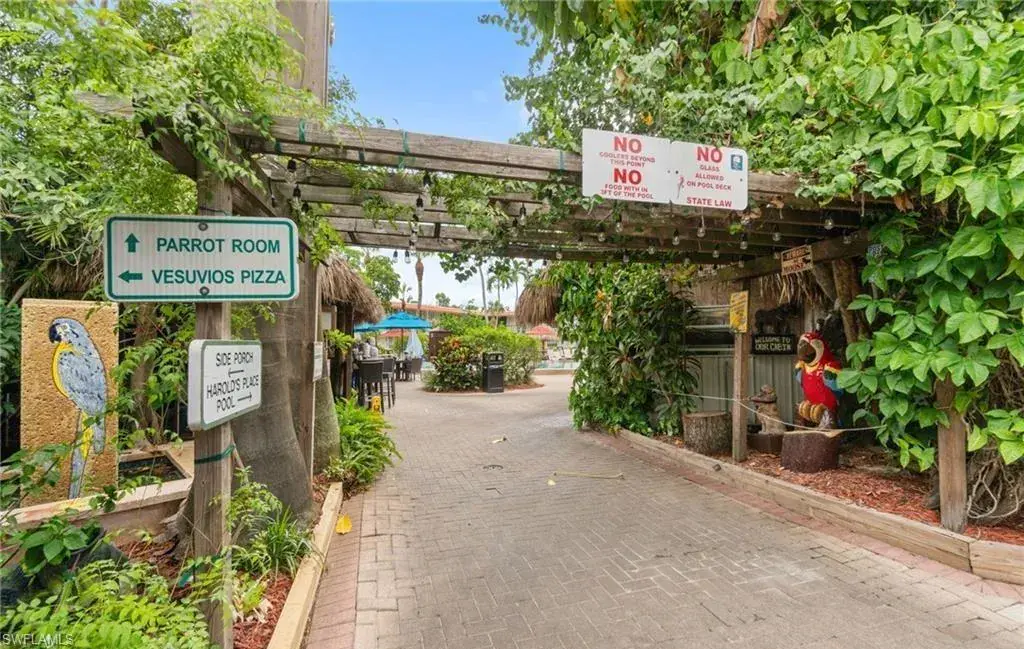 THE BEST UNIT HERE! Best New Price! END UNIT. Excellent location west of US41 in the highly desirable Moorings area of Naples. This light and bright condo is available as a great affordable get-a-way or as an investment property. Features Plantation Shutters, remodeled bath/shower. Popcorn ceilings removed. Convenient FIRST FLOOR end unit with a landscaped view unit facies the Pool and Bar/Restaurant…only 1 Mile to the white sandy beaches of the Gulf of AMERICA and just minutes to Old Naples with its many shopping, dining and entertainment options. Money-making Condo/Hotel unit offers everything you need to enjoy paradise as an investment property, with or without tenants. No minimum or maximum stay. Just pack your toothbrush and bathing suit. This very nice unit has all Tile flooring, new TV along with an updated Kitchen and Bath which includes a new Refrigerator and Microwave. There’s also a new built-in wardrobe as well as new cabinets, sink, hardware and granite counters. It is tastefully decorated and sold turnkey along 2 QUEEN BEDS. You can enjoy the resort-style pool, great restaurants on-site including the legendary poolside Harold’s Place (BEST BURGER IN NAPLES!) Fujyiama Steak and Seafood House and Vesuvio Pizza and Bar. Convenient laundry facilities on the property. On-site Property Management is also available. You can manage your own Rentals or place in the Rental Pool. ALL UTILITIES ARE INCLUDED IN MONTLY FEE INCLUDING CABLE & INTERNET