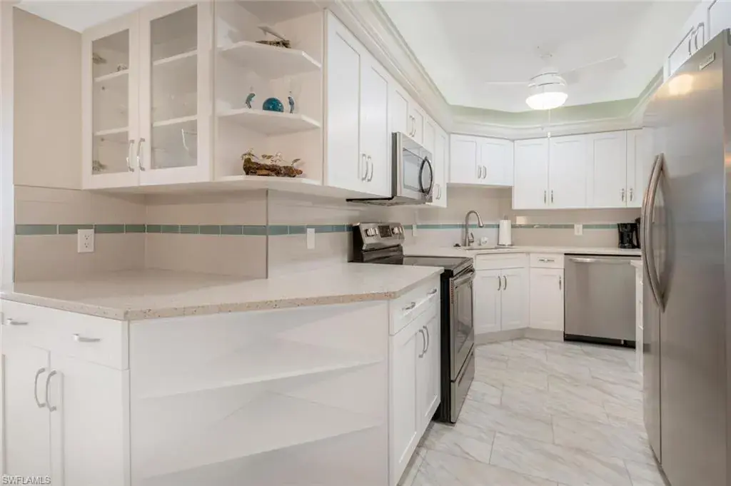 Enjoy daily seascapes on your open balcony along with sweeping gulf and sunset views! This unit recently had renovations in the kitchen, and bathrooms, as well as new tile flooring (no carpet anywhere!), and interior paint. The north side of the unit overlooks a meticulously landscaped park and of course – more glistening water. Gulfside Condominiums is a luxury high rise complex in the heart of Park Shore and includes numerous amenities such as: 24 hr security/doorman, concierge services, on site management, expanded fitness center, community room, library, pool and private beach walk access. Renovations include an entirely redesigned and upgraded lobby, social room, reception area, administrative offices, library, elevators, mailboxes and laundry. The exterior portion of the project includes a new and larger swimming pool, new deck, new pavilion, hot tub, fire pit and more. Additionally, there will be many new mechanical systems, utilities, upgraded safety systems, new property and building entryways, and decorative pavers replacing the asphalt parking surface. Get your steps in with the many walkers/runners on the Park Shore sidewalks or refresh with therapeutic beach strolls. This unit recently had renovations in the kitchen, and bathrooms, as well as new tile flooring (no carpet anywhere!), and interior paint. Take in a performance at nearby Artis of Naples or stroll the Baker Museum. In close proximity also is the upscale dining and boutique offerings of Venetian Village and a short drive to the posh downtown Naples environment. Schedule your private showing today, and start enjoying the good life you deserve!