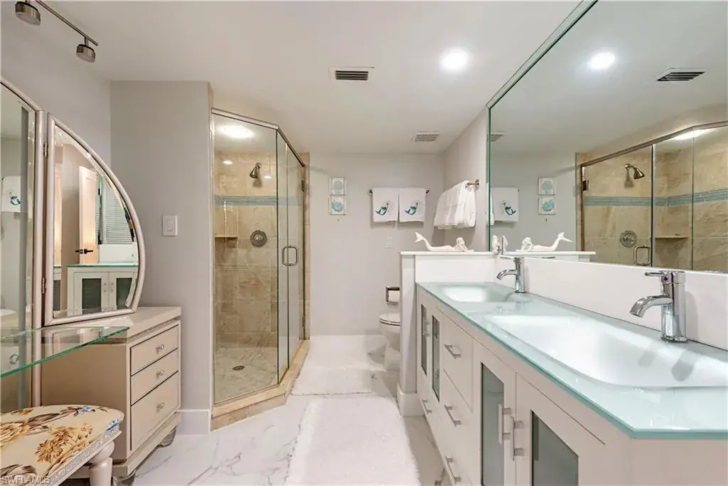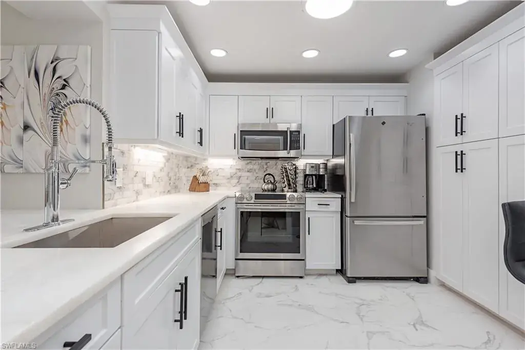 $8.5K/month is for an Off-Season Lease only. Two blocks to Naples white sand beaches! This pristine and fully updated 2 BR + Den, 2 Bath condominium with 1,667 Living Area in in the delightful four-unit complex of Gulfwalk with southern exposure community pool. A seaside cottage in the heart of Olde Naples. Feels like a new, coastal home. Clean and bright, but warm and charming. This condo’s features include an open floor plan, new flooring, beautiful furnishings, updated cabinetry and stainless-steel appliances and relaxing screened patio. Wonderful location near all of the exceptional restaurants, shops and galleries on Fifth Avenue South and Third Street South…and you will never tire of the glorious sunsets over the Gulf of Mexico! Sunny swimming pool and a garage round out this great ideal winter retreat!