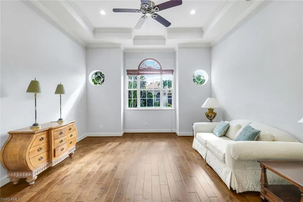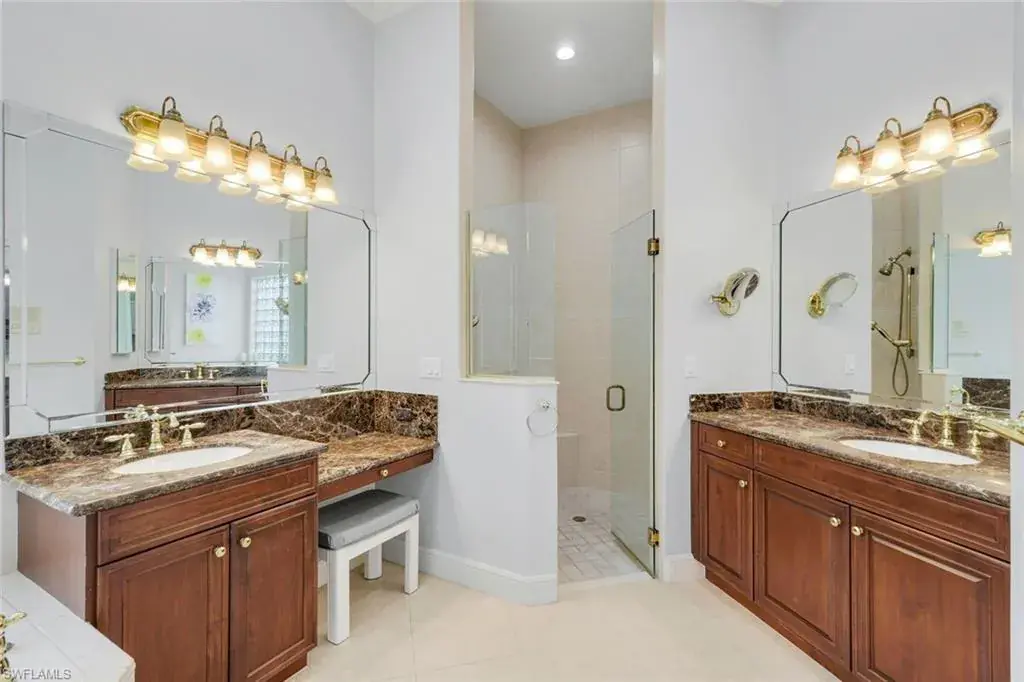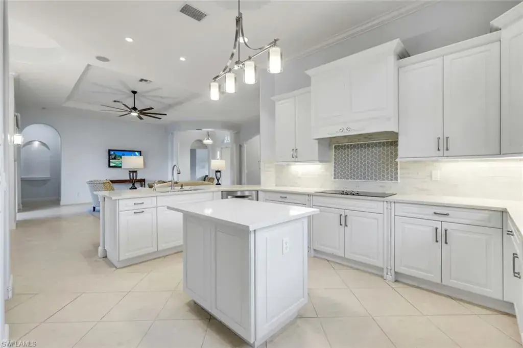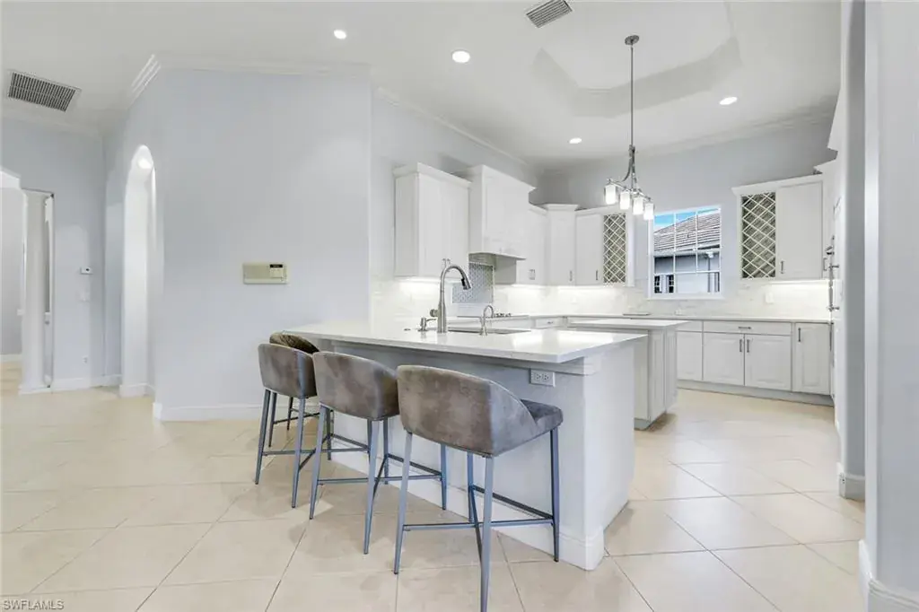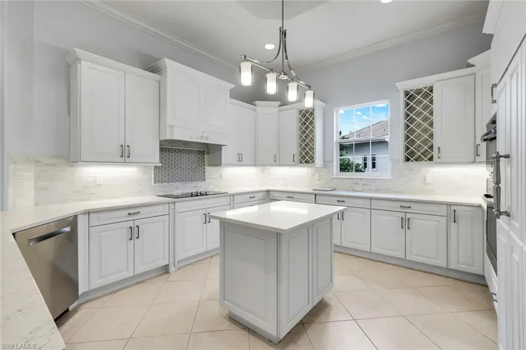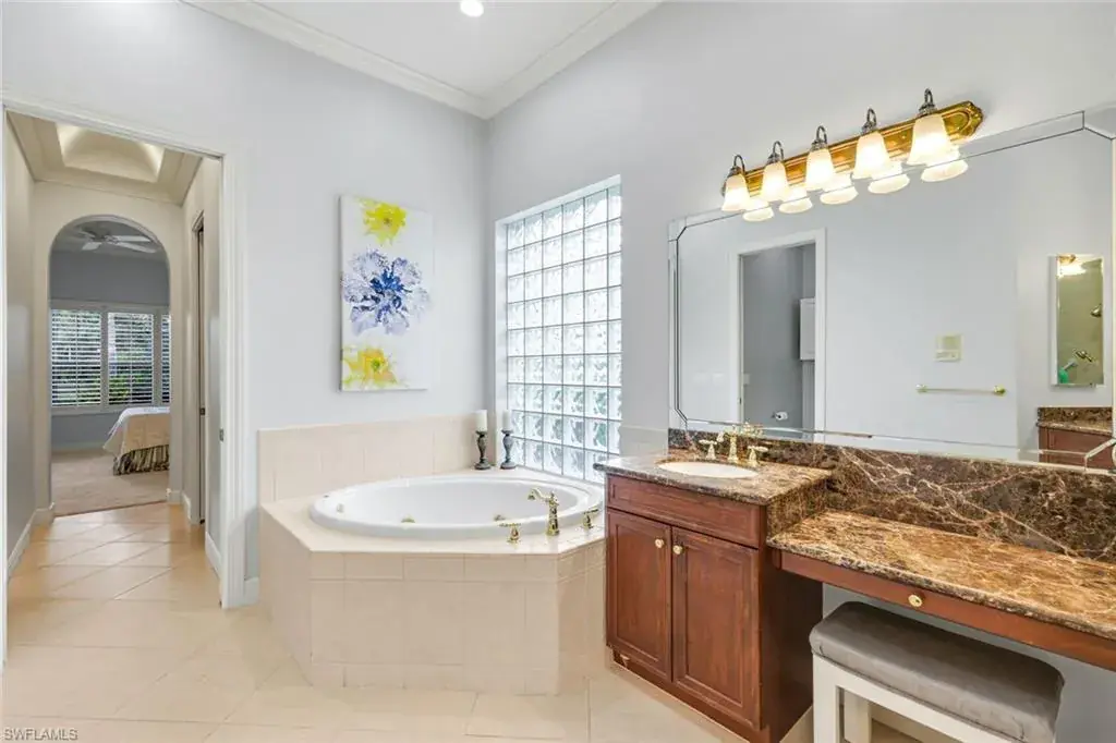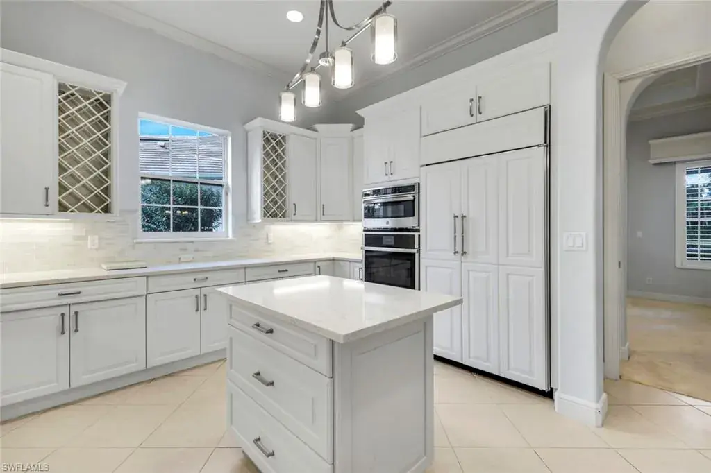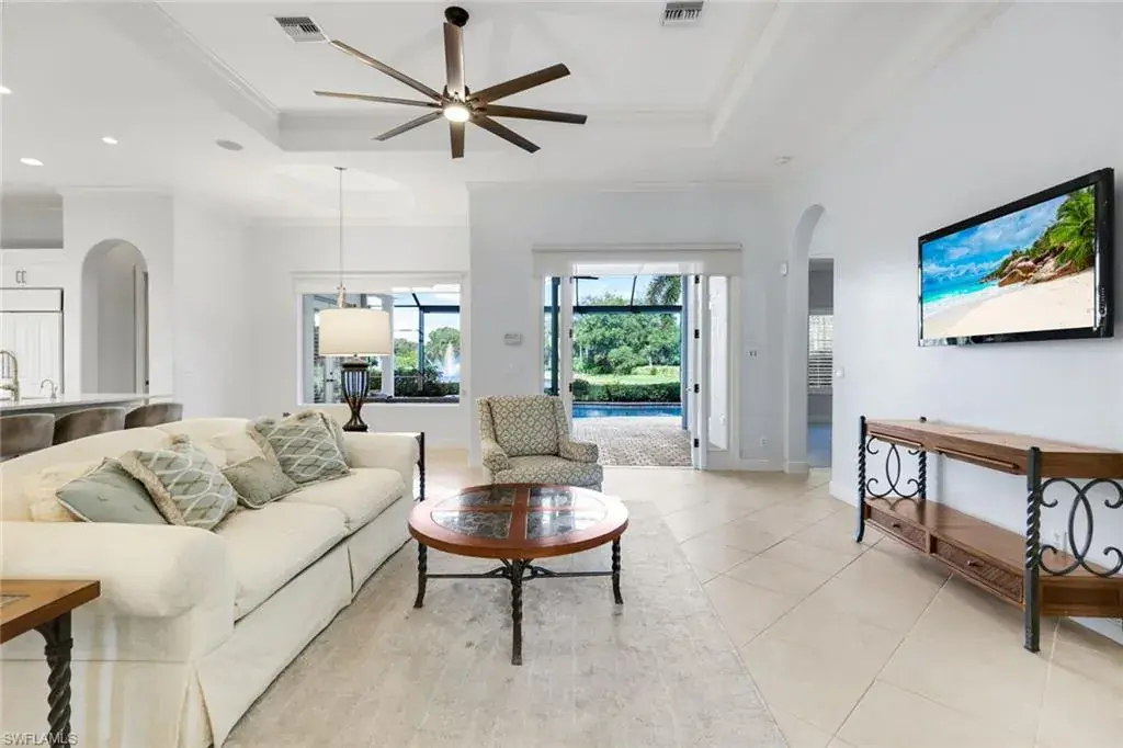 Expansive long lake views with two sparkling fountains and unforgettable evening skies! This stunning 4-bedroom + den, 4.5-bath estate home in Hammock Isles at The Vineyards combines timeless elegance with luxurious updates throughout. Recently refreshed interior, this home truly shines inside and out. Step inside and be greeted by hand-painted ceilings and columns, granite and marble countertops, a Sub-Zero refrigerator, and wood floors in the den. Thoughtful details abound, including crown molding, built-in closets, lighting fixtures and fans. Each bedroom features its own ensuite bathroom, ensuring privacy and comfort for family and guests alike. The home’s true showstopper? A breathtaking western long lake view with double fountains; a perfect setting for magnificent sunsets. Enjoy it all from your extended lanai with with picture window screens, and a large custom pool and spa, surrounded by lush tropical foliage that provides both privacy and beauty. Located within the gated community of Hammock Isles in The Vineyards, this home offers not only luxury but also an exceptional lifestyle. Optional Vineyards Country Club membership available and includes access to a world-class Wellness Center, newly renovated Clubhouse and Pool, Tennis and Pickleball, and two championship 18-hole golf courses. Just minutes from Naples’ world-class beaches, dining, and shopping, this home is the perfect blend of luxury, lifestyle, and location. Once you walk through the front door. You’ll never want to leave.