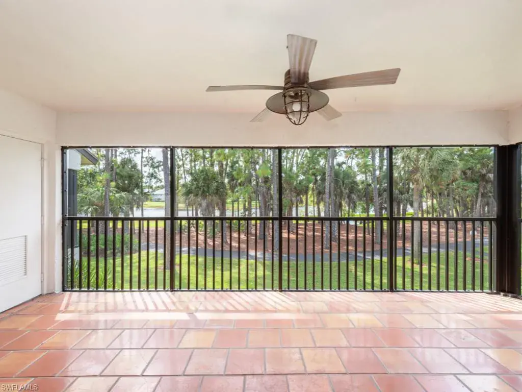 Currently the only 2nd floor condo for sale with a great lake view in The Hamptons. The location of this 2 bed, 2 bath home is what makes it extra desirable. An open north facing patio at the front, and a large screened lanai in the south facing rear provides plenty of fresh air space to relax. Sliding glass doors allows easy access to the kitchen, large enough for a table/chairs. The bedrooms are separated by the great room with vaulted ceiling, and sliding glass doors stack aside for access to the lanai and view to the lake. Both bedrooms have walk-in closets, and a 5×6 foot storage room ensures plenty of space to stow your belongings. New water heater 2025 was just installed.The Hamptons community offers a tennis court, 2 swimming pools with clubhouses, assigned and guest parking for its residents. The Kings Lake community is known for its mature landscaping, a picturesque walking path bordering the large lake, and is ideally located next to shopping and dining, as well as a short drive to downtown Naples and beaches.