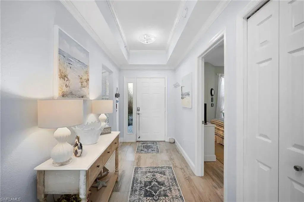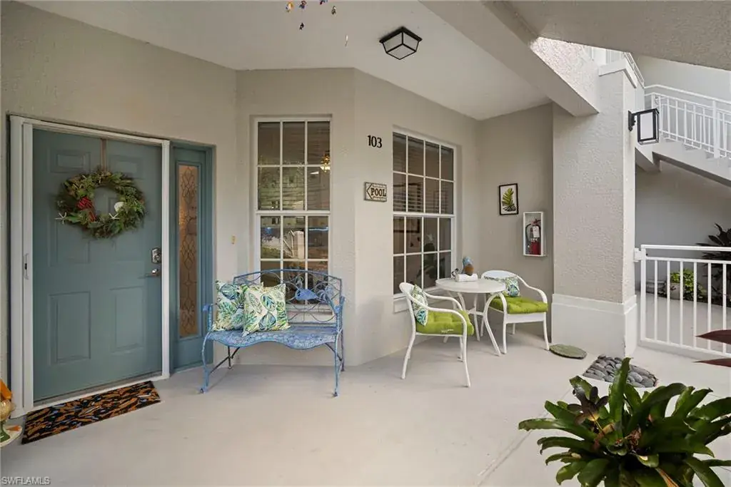 Welcome to 2275 Harmony Unit 103! This move-in ready, beautifully updated 2 bed/2 bath condo exudes relaxed coastal living! Step inside and walk into the elegantly appointed kitchen with soft touch close shaker cabinets and custom pantry. Quartz countertops, subway tile backsplash, large stainless steel farmhouse sink and chrome pull-down faucet complete this stunning updated kitchen. Gorgeous wood plank porcelain tile flows throughout the entire unit, including lanai. The living area is spacious and with a formal dining area and stunning floor to ceiling tiled electric fireplace. The glass sliders in the lanai allows you to enjoy additional living as a 3 season room. Manual shutters have been addend on the lanai for additional peace of mind, security and protection from the elements. The master bedroom has 2 large walk-in closets and fully updated ensuite bathroom with tiled and frameless shower and dual sink vanity. The second bedroom also has been updated and has a large closet for storage, and a dual entry bathroom. Freshly painted throughout with all new light fixtures and ceiling fans, this unit is truly a showstopper! The best part is that it’s located in Stonebridge Country Club, this gorgeous condo is FULLY BUNDLED GOLF WITH OWNERSHIP! NO WAIT LIST! The Kip Schulties golf course redesign was completed in 2023. Stonebridge’s golf course is renowned for its stunning vistas with colorful flower beds and pristine native areas. Stonebridge Country Club also includes tennis, resort style pool, fitness center and several dining options including the new bistro bar. Ideally located in west of I-75 in North Naples, Stonebridge has easy access to downtown Naples, Mercato, airports, restaurants, shopping, and is just three miles from the pristine beaches of the Gulf. Amenity rich country club lifestyle in the the heart of North Naples. Schedule your private showing today!