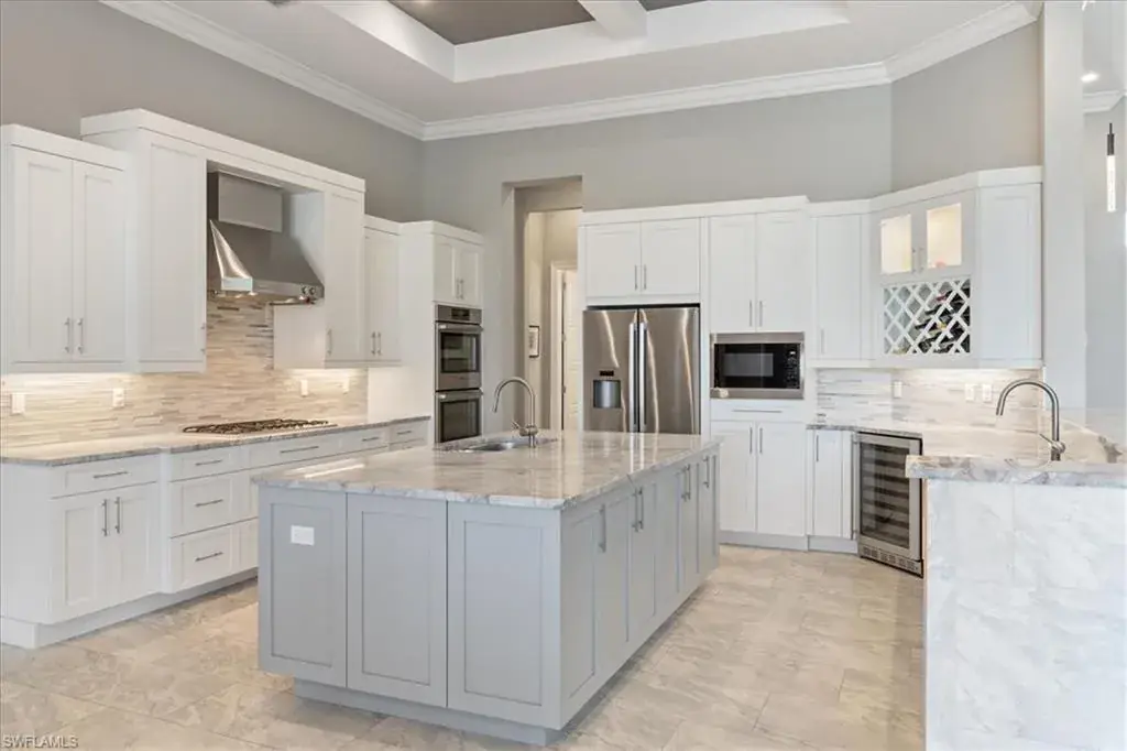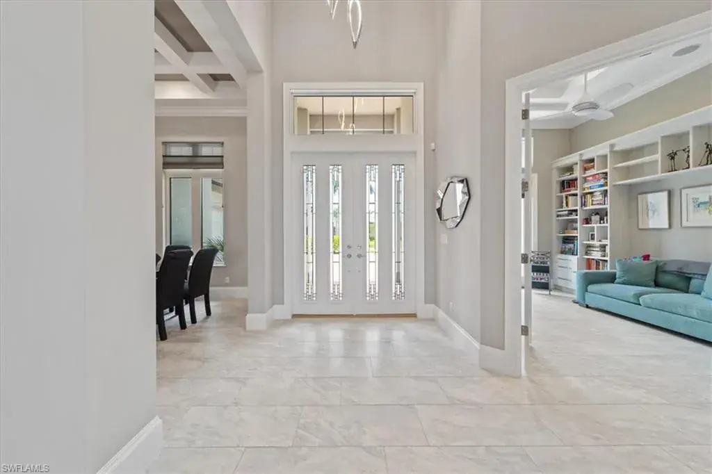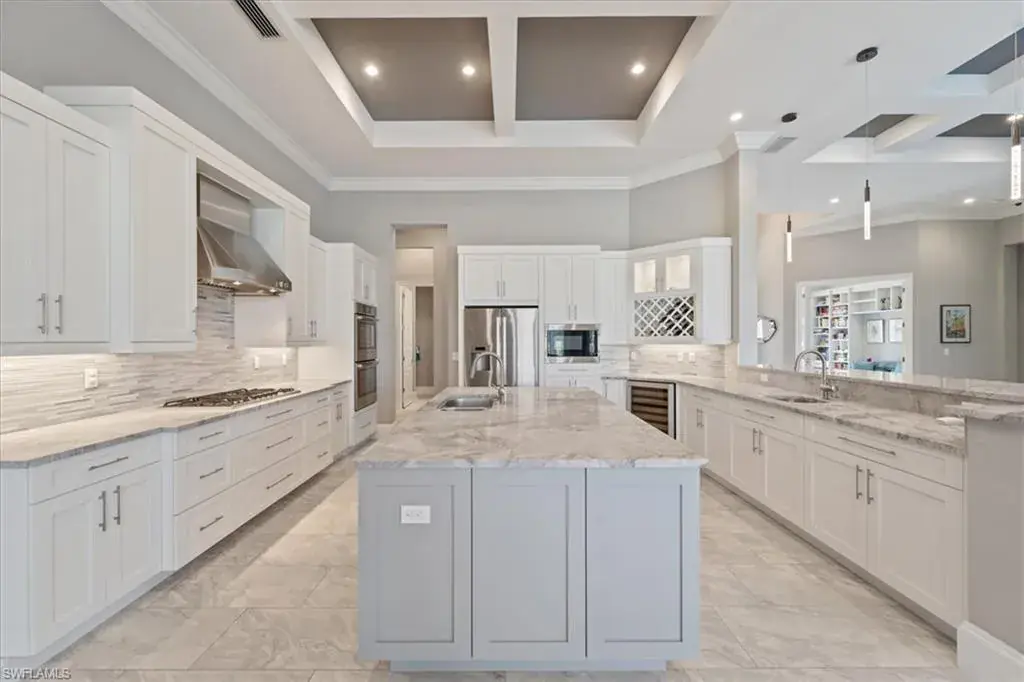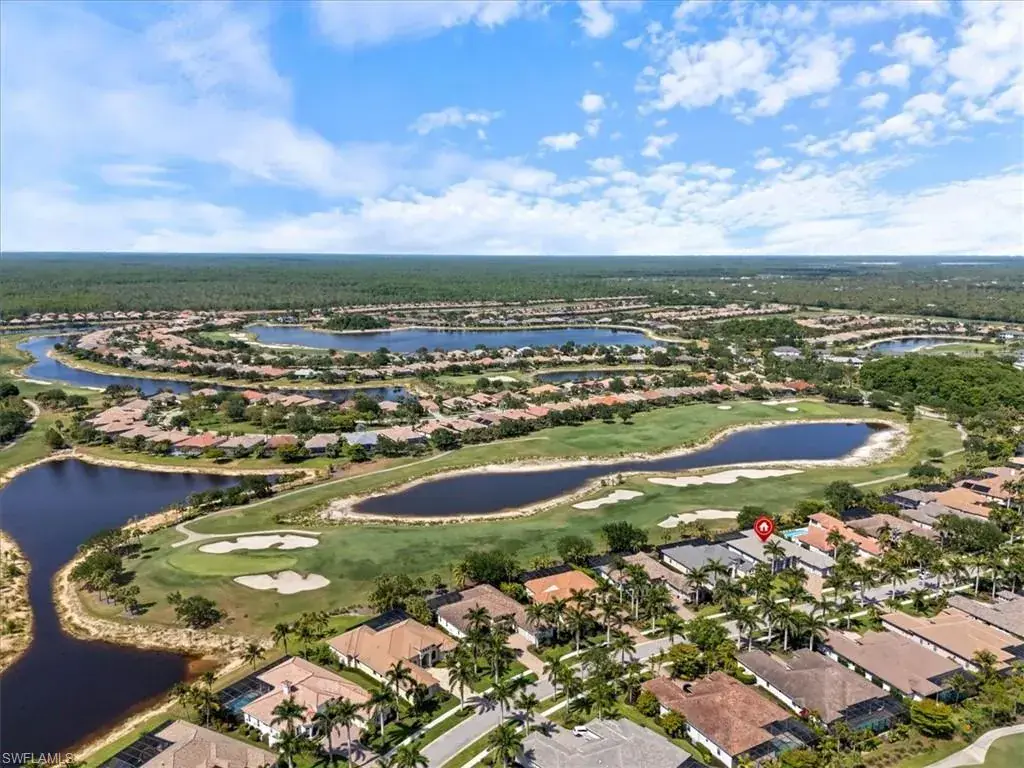 Welcome to an exquisite retreat at 11907 Hedgestone Court located overlooking the 10th fairway of the prestigious Eagle Golf Course. This elegant residence sits on a spacious lot, offering privacy and breathtaking views. As you approach the property you are met with a circular driveway, providing a grand entrance, ample parking space for residents and guests alike, complemented by an oversized 3 car garage. Boasting 5 bedrooms, a den/office and 4.5 baths, this home exudes luxury and sophistication. As you step inside you’ll be greeted by a grand interior featuring vaulted coffered ceilings, creating an ambiance of modern elegance. The kitchen is a chef’s dream, equipped with Bosch & Monogram appliances, a gas 5-burner cook-top, a large island with a separate sink, custom cabinets with quartz counter-tops and a wine/beverage cooler. The expansive master suite is a haven of tranquility, complete with a luxury spa-like bathroom that promises a rejuvenating escape from the everyday. Step outside to the screened-in patio, where a private oasis awaits. Enjoy sun-soaked afternoons by the pool, unwind in the spa, or indulge in alfresco dining with the fully equipped outdoor kitchen. The home is graced with enchanting views, providing a peaceful backdrop for your outdoor lifestyle. Wireless powered storm smart screens provide both comfort and peace of mind. In addition to its impressive features, this home includes a 500 gal propane tank, new hybrid hot water heater, impact window & doors, a car charger and much more. Twin Eagles is one of the finest communities in SWFL, experience 1,115 acres of natural tranquility, 2 Championship Golf Courses- Talon course designed by the Nicklaus Group and The Eagle Course designed by Steve Smyers. New Clubhouse, bocce Courts, Himalayan putting green, Fitness Center, Tennis, Pickleball, resort pool and tiki bar. Immediate FULL GOLF Membership available!