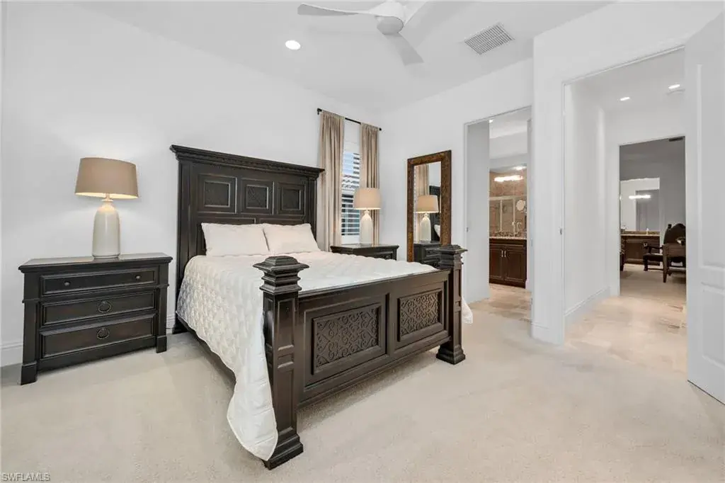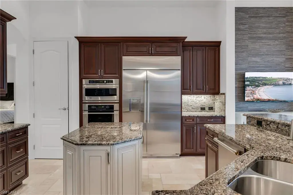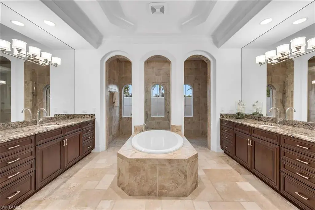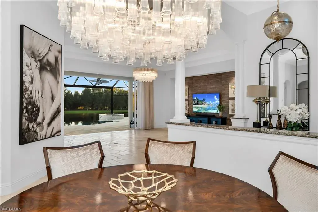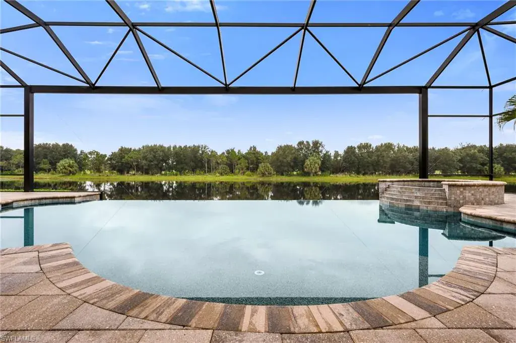 FULL GOLF MEMBERSHIP INCLUDED! Exquisite Custom Estate Home with Lake & Golf Views. Welcome to this luxurious custom-built residence, ideally positioned on an expansive south-facing lot within the prestigious, private 36-hole golf community of TwinEagles. Offered turnkey furnished, this 3,313 sq. ft. masterpiece blends sophisticated living with effortless entertaining. The open-concept great room floor plan flows seamlessly into the gourmet kitchen and expansive outdoor lanai, creating the perfect atmosphere for both intimate gatherings and grand-scale entertaining. The chef’s kitchen features a central island, custom cabinetry, stainless steel appliances, wine cooler, and a new 48” stainless-steel refrigerator and dishwasher. Step outside to your private oasis with an oversized infinity-edge pool with waterfall spa that visually disappears into the tranquil lake beyond, a rare and coveted feature in the community. Picture window screens frame the outdoor space enhanced by multiple seating areas, a fully equipped summer kitchen, wet bar, and elegant dining space to complete this resort style setting. Additional upgrades include impact windows and doors, Pebble Tec Pool finish with lighting, full security system, designer chandeliers and lighting, professionally designed furnishings with custom wallpaper & draperies, and a full landscape lighting system. A spacious 3-car A/C garage with extra storage and two new house A/C units complete this exceptional offering. This is a rare chance to live in one of Naples’ most exclusive communities recently revitalized with a $30 million renovation, featuring a beautifully remodeled clubhouse, gourmet dining options, cutting-edge fitness facilities, and two championship 18-hole golf courses. Whether you’re looking for a serene retreat, an energetic and social lifestyle, or simply a refined and comfortable living experience, this home has everything you need to enjoy the best of luxury living.