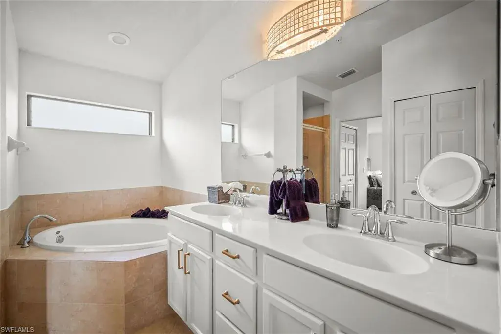 Extremely rare top-floor end unit with 3 full bedrooms and no side neighbor, featuring an incredible southern lake view! This unique residence comes fully turnkey and move-in ready for an effortless move, complete with a FULL golf membership to Heritage Bay’s 27-hole championship golf course. The “Abbey” model Veranda condo features a 1-car detached garage, front AND back screened lanai, and this one has the traditional den/office closed into a bedroom, transforming the layout into a true 3-bedroom condo. Flooded with natural light and offering peaceful southern lake views, this condo has hurricane impact glass and sliders, and was recently refreshed with a newer A/C (2020), freshly painted walls & cabinets with new hardware, and modern furniture and fixtures. Heritage Bay boasts a stunning 27-hole Lewis-Azinger designed golf course and aqua driving range. The grand clubhouse features diverse dining options, elegant event spaces, and a lively social scene. Dine at The Grille Room, a casual indoor/outdoor bar and restaurant with an incredible southern view of the 27th green. Members enjoy a resort-style pool area with heated spa, plus ‘The Cabana’ poolside bar & grille offering a full-service kitchen. The community also offers a top-notch tennis program with 7 har-tru clay courts, pickleball (4 more being added with no assessment) & bocce courts, and a state-of-the-art fitness center. With a calendar full of events and activities, Heritage Bay delivers a vibrant, luxurious lifestyle—whether you’re a golf enthusiast or simply seeking serene golf & nature views and elevated living. These condos are super easy to rent in winter at $7500+ a month, which covers all of your costs!