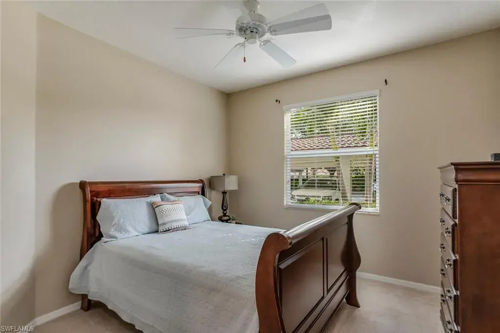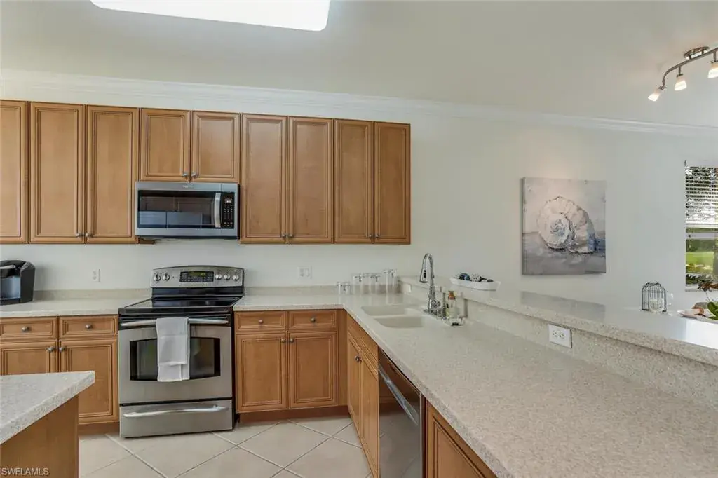 This sensational 2+Den/ 2Bath Colonade end unit was just updated with a light and bright modern décor that is sure to please and is being sold turkey. It has a southern facing window in the living area and a western and southern view of the Cypress 16 lake, fairway, and the surrounding preserve. The unique characteristics of the Colonade are an oversized outdoor storage closet, a very private guest bedroom/bath, and a large eat in kitchen with lots of storage and counter space. Heritage Bay is not just a residential community; it is a union of the natural beauty of Southwest Florida, and an active luxury resort with amazing lakes, 27 holes of golf, a fun poolside cabana, luxury clubhouse grill room, active tennis, 6 pickleball, bocce programs, and a full service fitness and aerobics center. There are social events galore and the members are friendly and highly active. Every day is like a vacation with friends, and every property owner is a golf member.
