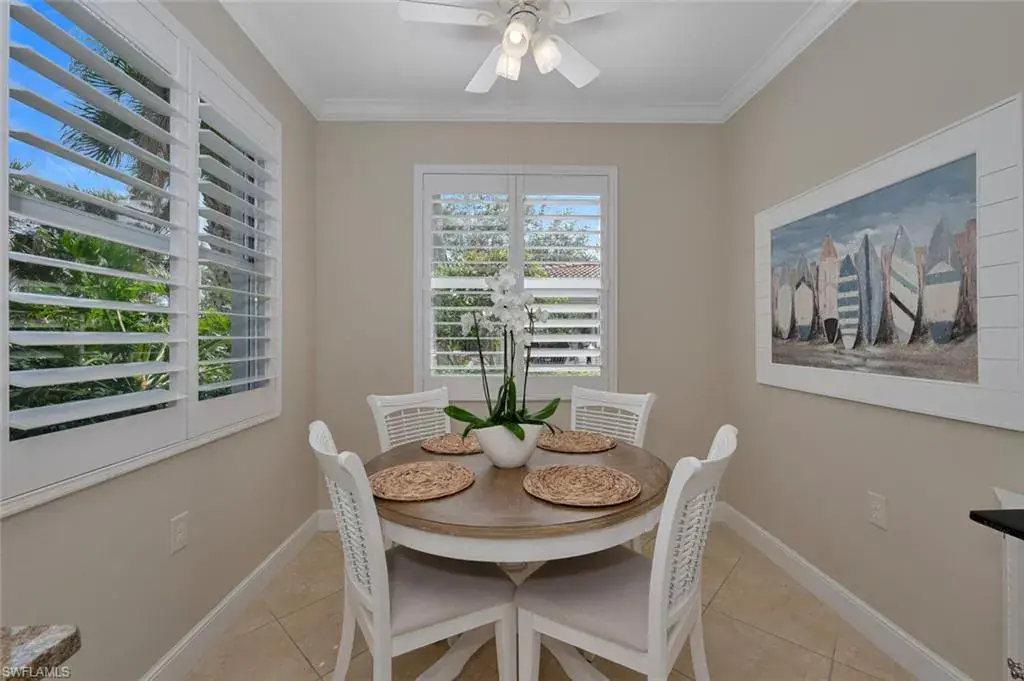 Step inside and be greeted by an open floor plan that’s perfect for entertaining, with large end unit windows that allow natural light to flood the space. Plantation shutters throughout. The spacious living area leads to a private screened-in lanai, where you can unwind while enjoying the picturesque surroundings.