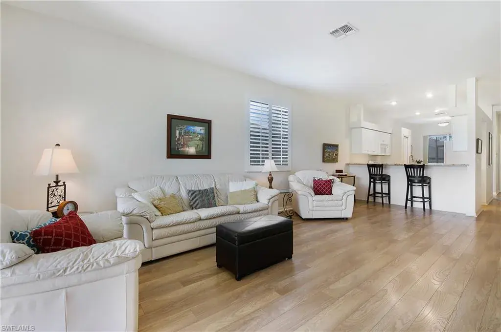 WOW! Seller Just Made A Price Reduction – This is an incredible opportunity for an end unit with a 2 car garage and a terrific view near the cul-de-sac! Hurry, this one won’t last long! Be in your new home for the holidays! Investors take note, Club Homes lll allows rentals immediately (without waiting 2 years). With recent updates including a NEW ROOF in 2018, 2021 new water heater, and 2024 NEW A/C WITH A TRANSFERRABLE 10 YEAR WARRANTY, this home is move-in ready and waiting for you to make it yours. Welcome to the one you’ve been waiting for, at the price you’ve been waiting for, in the highly sought-after Heritage Greens community! This stunning end-unit villa is flooded with natural light and boasts a breathtaking lake view and lush landscaping that greet you as soon as you step on the property. The peaceful surroundings create an atmosphere of tranquility, making this a true sanctuary. This spacious one-level floor plan offers 2 bedrooms, a versatile Den (perfect for an office or third sleeping space for guests), and 2 full bathrooms. The open layout provides a seamless flow, with maintenance-free flooring that looks like wood planks throughout, large windows bringing the outdoors in and creating an airy expansive feel—like a single-family home without the exterior maintenance! The Owner’s Suite, overlooking the fairway on the 2nd hole, features a cozy bay window with serene views of the backyard, allowing you to unwind in privacy and peace. For outdoor enjoyment, there’s a screened lanai plus an additional open patio for soaking up the sun and fresh air. And with a TWO-CAR GARAGE you’ll have plenty of space for storage, making this home as functional as it is beautiful. Located in one of North Naples’ most desirable communities, Heritage Greens offers the best of both worlds: affordable, luxurious living with no golf course maintenance fees! Whether or not you play golf, you’ll love living adjacent to the public Arrowhead Golf Course and enjoying all the amenities, including pickleball, tennis, and two community pools. The neighborhood is also pet-friendly, with up to two pets allowed, so your furry friends can enjoy the Florida lifestyle too. Perfectly positioned for convenience, you’re just minutes from all that Naples has to offer – the pristine Gulf beaches, shopping and dining at Mercato and Logan Landing, and close to I-75 for easy access to all of Southwest Florida. Plus, with low HOA fees and being in the preferred X-Flood Zone, you’ll enjoy peace of mind with lower insurance premiums—most lenders won’t require flood insurance here! This villa is an excellent opportunity for a first-time homebuyer, seasonal resident, or anyone looking to experience the best of North Naples. Don’t miss out on this rare find—schedule your showing today and start living the Florida lifestyle you’ve always dreamed of! Opportunity is knocking!