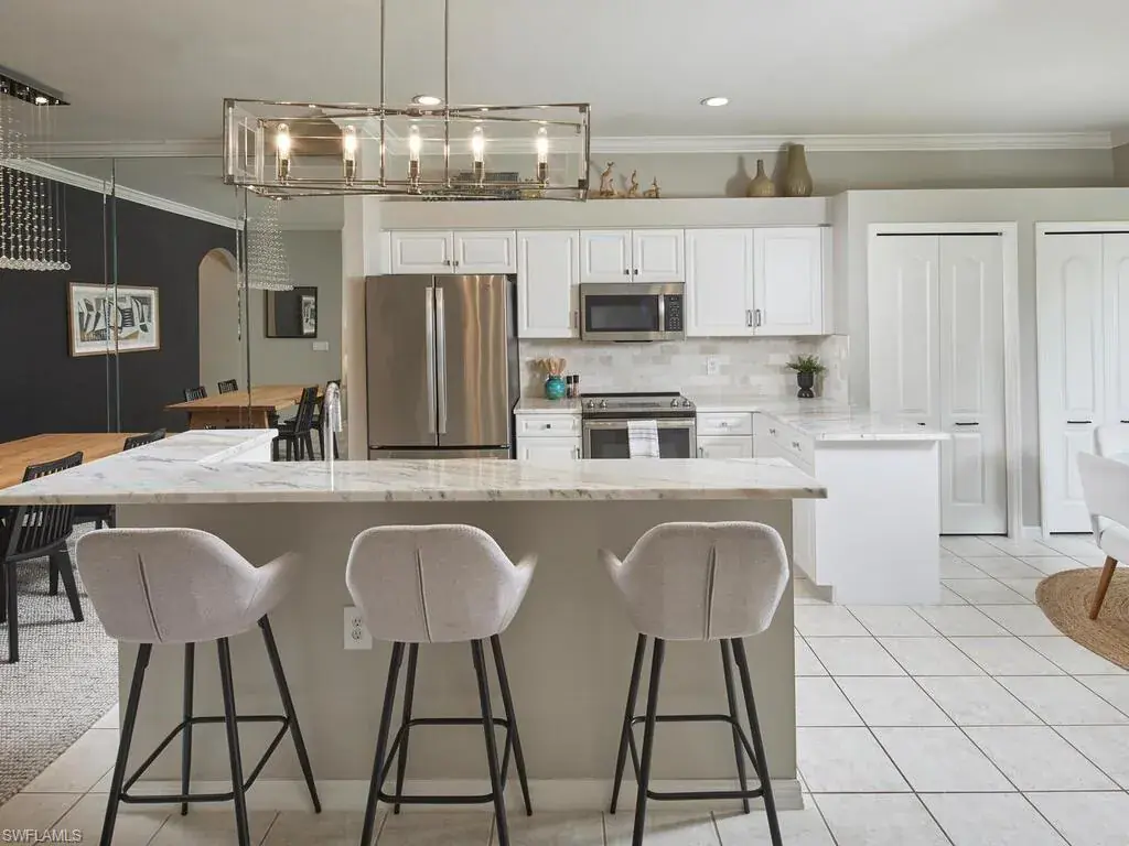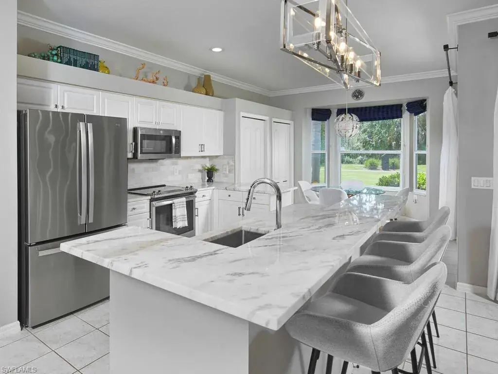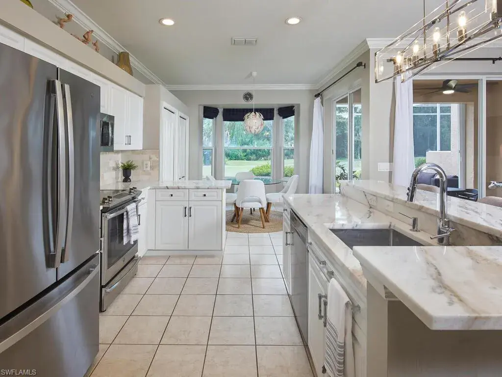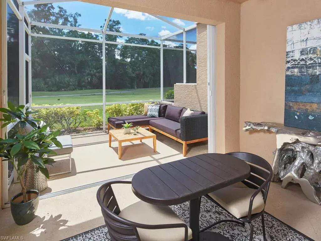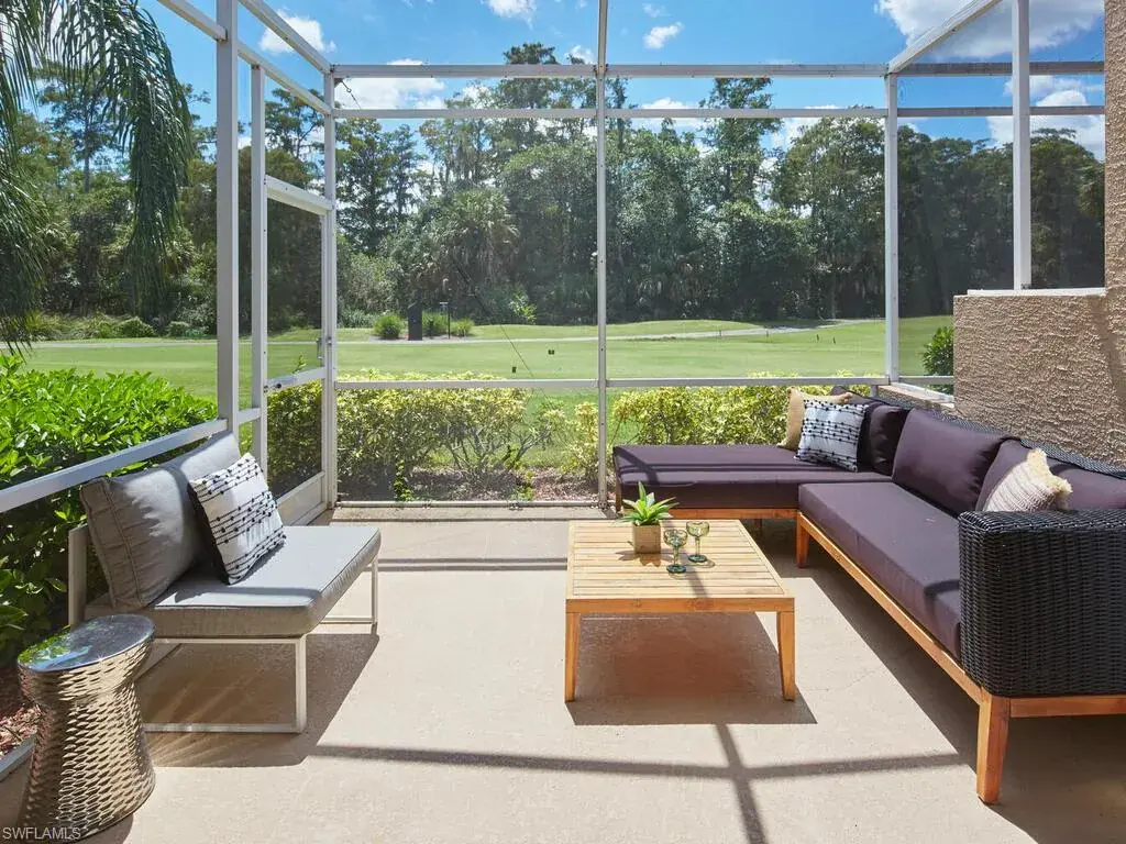 Updated price improvement! Welcome to your own slice of North Naples! This 2-bed, 2-bath villa in Heritage Greens is move-in ready! As you walk into the open concept living space, you’ll get your full dose of sunshine with all that southern exposure. The living room corner sliders bring the outdoors in as it they open to the 3rd tee on Arrowhead Golf Course – an 18-hole, par 72 course designed by Gordon G. Lewis – rated one of the best public courses around! The screened-in back lanai offers extended living space for patio dining, lounging or enjoying your morning coffee as the sun rises over palm trees and rolling greens of your forever well-maintained back yard. Say goodbye to that vitamin D deficiency! The peaceful setting backs up to a natural preserve – no construction or road noise ever. Modern updates include quartz counters, stainless steel appliances, a large single bowl stainless sink/faucet, ceiling fans, updated guest bath and wood-look vinyl flooring in the bedrooms. Storage is abundant: a double pantry in the kitchen, a hallway closet, and attic access above the oversized 1-car garage. Roof and landscaping are all covered by your HOA, so the ease of living got even greater. When you need to take a dip, the pool is only a few steps away. Flexible rental policy: up to 12 per year, 30-day minimum. All of this and less than 9 miles from Gulf beaches, shopping and dining right around the corner. Low-maintenance, high-enjoyment. Flood Zone X. (Current property taxes are non-homestead; full-time residents will enjoy significantly lower rates.)