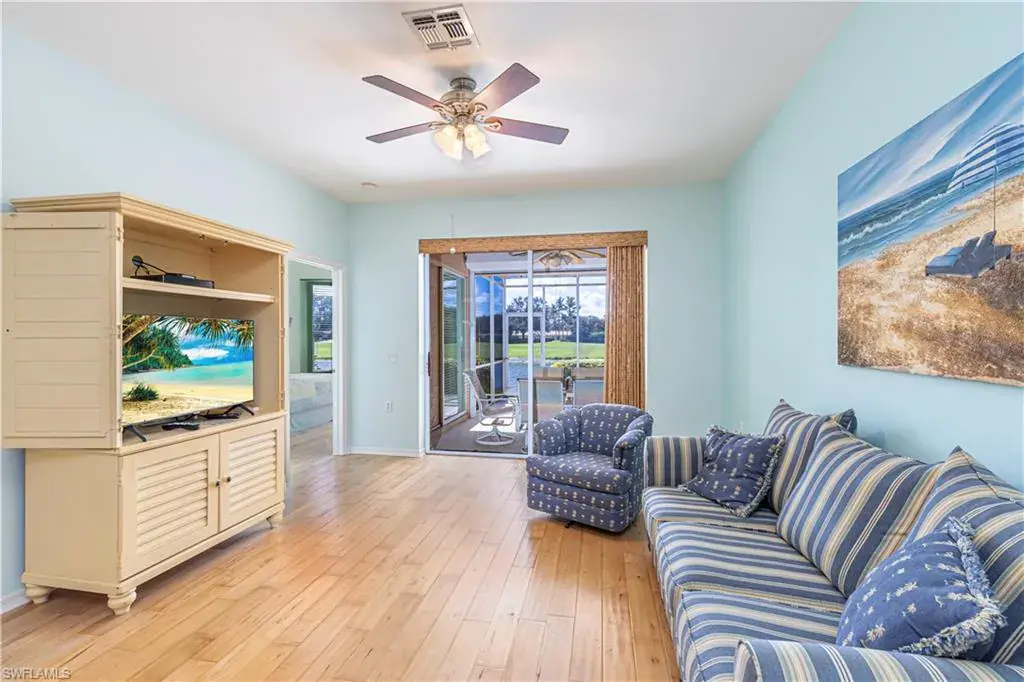 Beautiful Lake and Fairway view, without the high fees!!!! Tucked back from the 3rd fairway on the very popular Arrowhead Golf Course, this Villa has everything you want. The home is 1360 sq ft, 2 bedroom + den which also has pocket doors and a king size murphy bed for extra guests. The Guest bedroom is split from the Master for more privacy, full size washer and dryer set, matching range, refrigerator, dishwasher (all approx. 3 years old), Electric Hurricane Shutters on the front and rear of the house (2 years old) along with accordion shutters, Air conditioning and hot water heater replaced 2 approx. years ago as well. Entire house has hardwood flooring except wet areas and much more. Villa is approx. 100ft walk to the community pool.