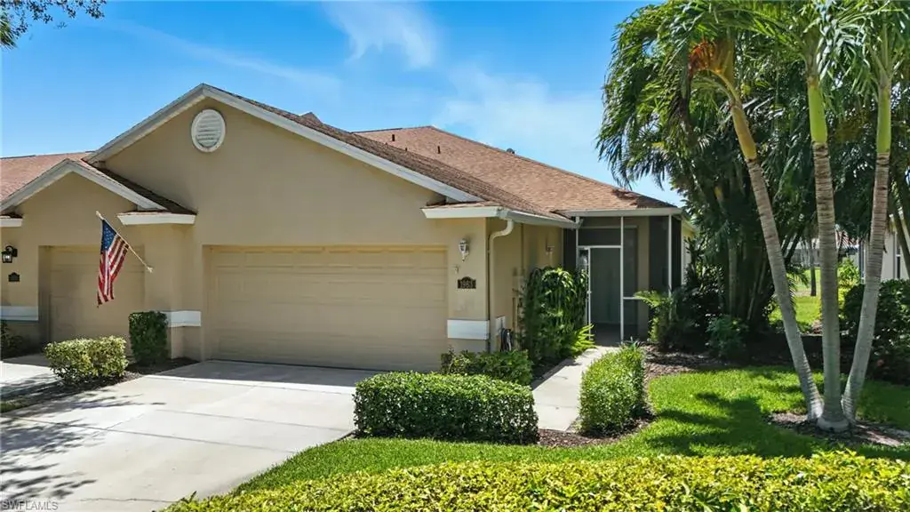 Available for Annual Rental. Enjoy peaceful golf course and water views from this spacious 2 Bedroom + Den, 2 Bath end-unit villa in the gated community of Heritage Greens. Rent includes cable, internet and lawn care for a truly maintenance-free lifestyle. This open-concept home features split bedrooms, tile and vinyl flooring throughout, granite countertops, stainless steel appliances, and a breakfast bar that opens to the main living area. The primary suite includes a bay window, walk-in closet, and updated ensuite bathroom. Additional highlights include built-in shelving in the den, two screened patios (front and extended lanai in the back), and a 2-car garage with large driveway for extra parking. Community amenities include Arrowhead Golf Course (public, pay-as-you-play), community pool, clubhouse, tennis, pickleball, fitness center, and playground.