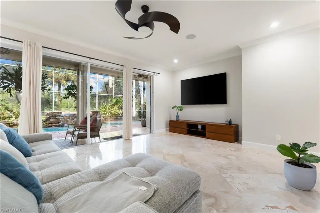 MOTIVATED SELLER! Stunning property featuring 7-bedrooms plus den and 3-bathroms in a large Single Family Home with over 3,600 sq. ft. in the desirable Heritage Greens community. This Luxury Property offers an beautiful and unobstructed golf course views from the balcony and pool area. Privacy guaranteed that never to be developed. Private passage to Laurel Oak Elementary (10/10 rated).School bus stop for Oakridge Middle (10/10 rated). Step inside over the elegant travertine stone floors and refreshed bathrooms. Remodeled chef’s kitchen with: Industrial-grade gas range with dedicated underground gas tank. White quartz countertops. Built-in wine cooler. Air-conditioned, insulated garage (ideal for gym, workshop, or storage).Custom saltwater pool with resort-style design. Enjoy wide golf course and preserve views, low HOA fees, and access to the Arrowhead Golf Club, fitness center, tennis, pickleball, and community pool. Ideally located near top schools, shopping, dining, and just minutes from Naples’ white sandy beaches. Come and see it and make it yours!
