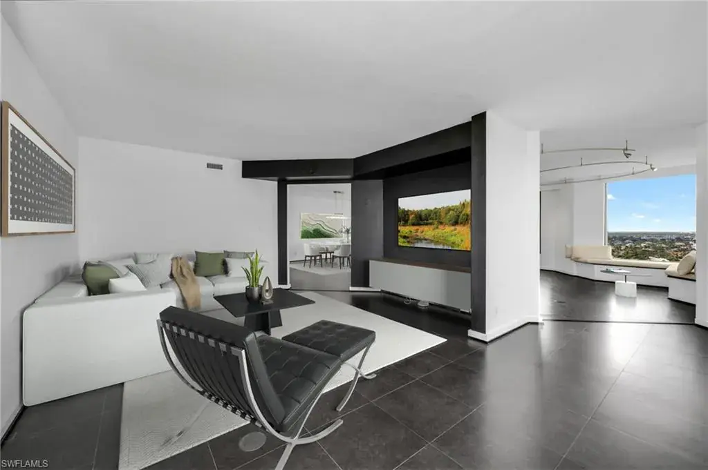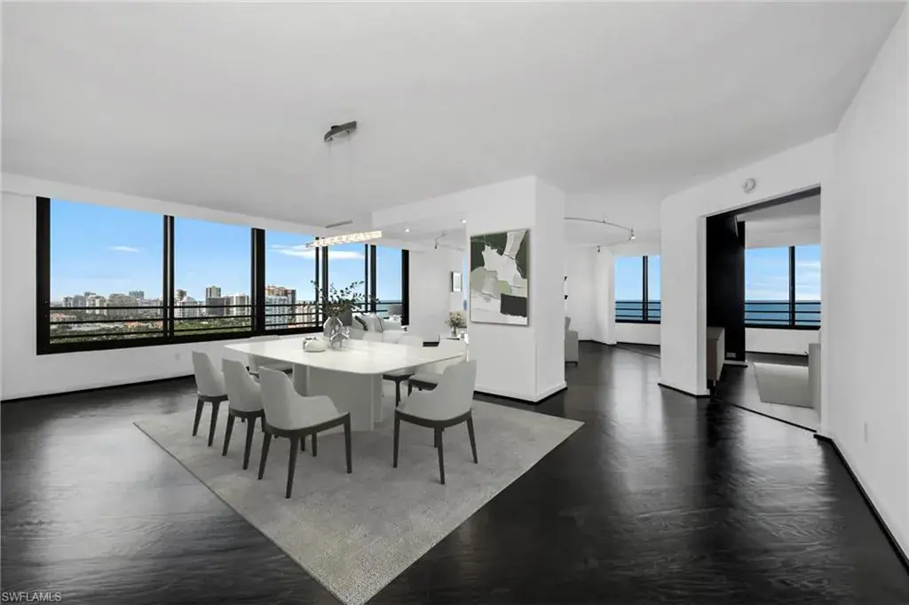 Nestled in the heart of Naples, this exceptional 21st floor end unit offering over 2400sqft, is a fusion of modern elegance and coastal charm, a fully renovated sanctuary where clean lines rule the day. A true gem offering serene living with modern luxury and is just waiting to be your idyllic retreat.