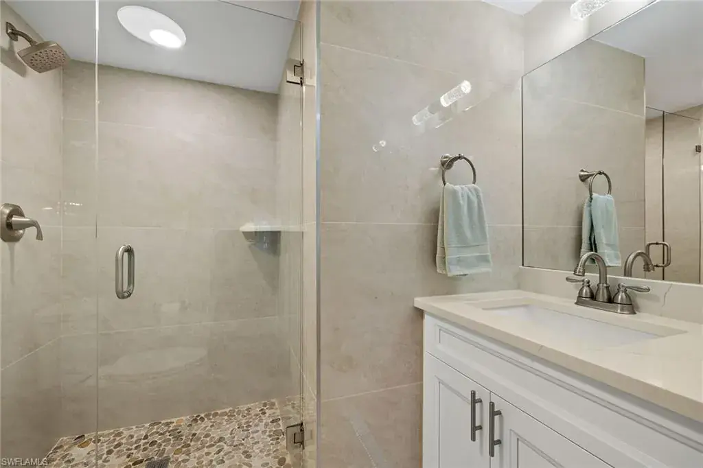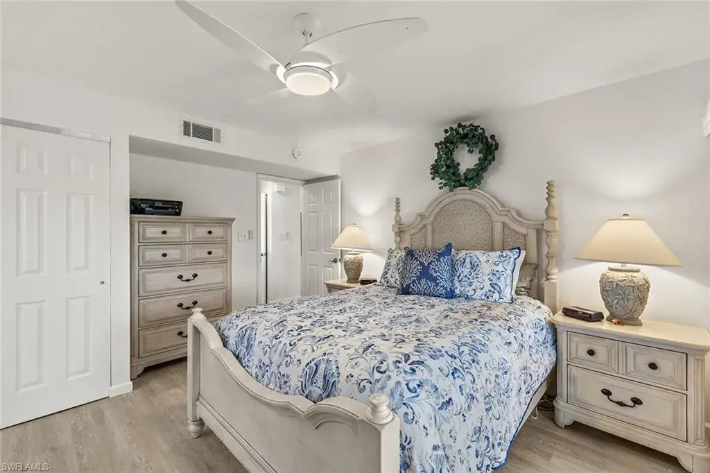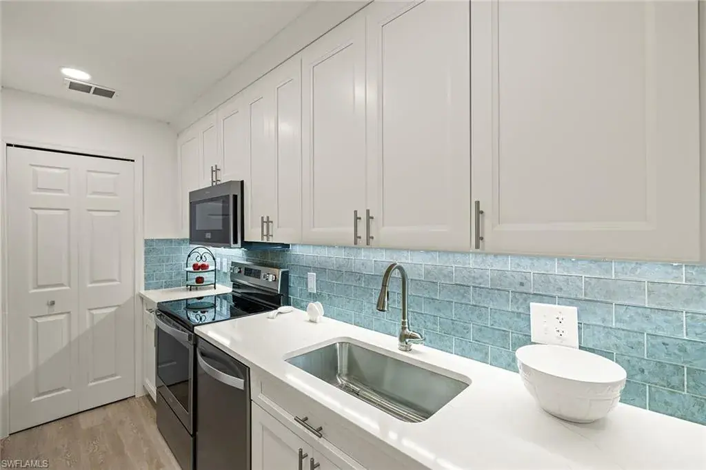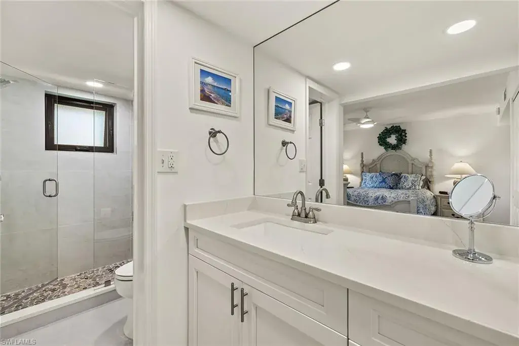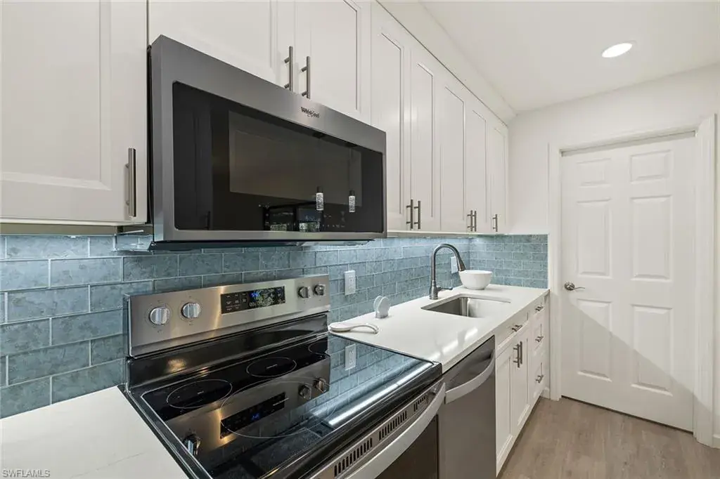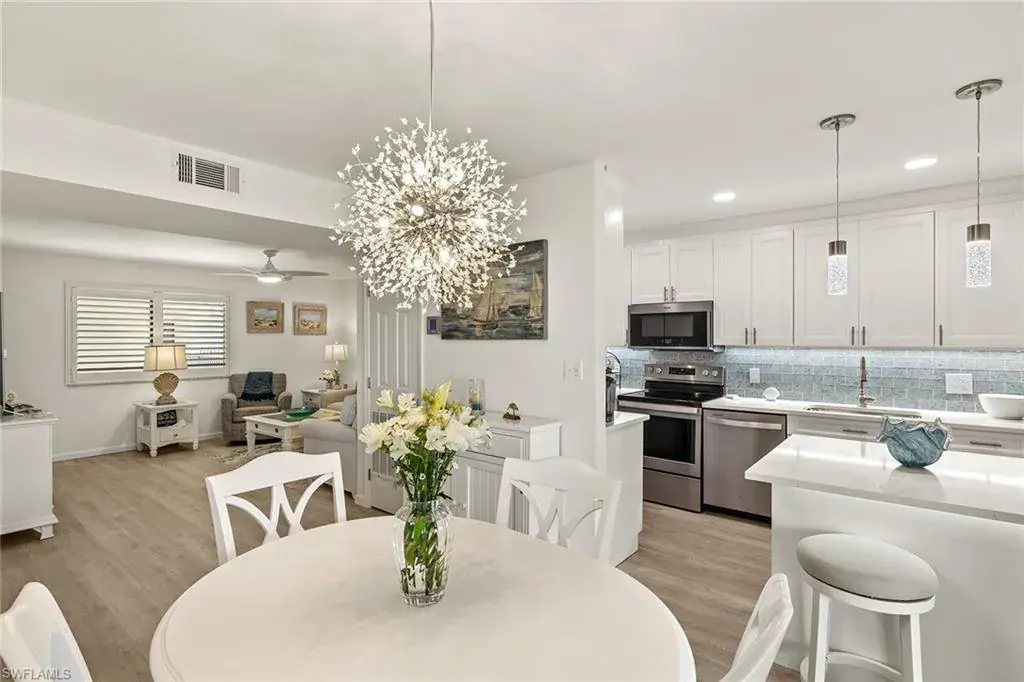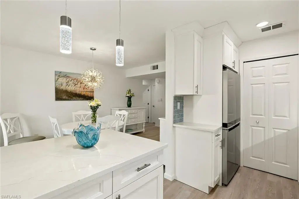 Experience elevated Florida living in this impeccably renovated end-unit residence at Hidden Lake Villas, featuring serene lake and sunset views from a generous third-floor lanai. Every detail of this furnished home is pristine, with a modern coastal kitchen, updated cabinetry, stainless-steel appliances, fully renovated baths, and stylish oak flooring throughout. Recent upgrades include impact-resistant sliders, windows, and doors, along with a new hot water heater for added efficiency and peace of mind. Hidden Lake Villas residents enjoy resort-style amenities such as pickleball, tennis, a heated pool, and a fitness center surrounded by lush, landscaped grounds. Ideally located near Venetian Village and Waterside Shops, this residence provides convenient access to fine dining and luxury shopping. Owners may also join the Park Shore Beach Association offering private beach access, gated parking and facilities for an annual fee.