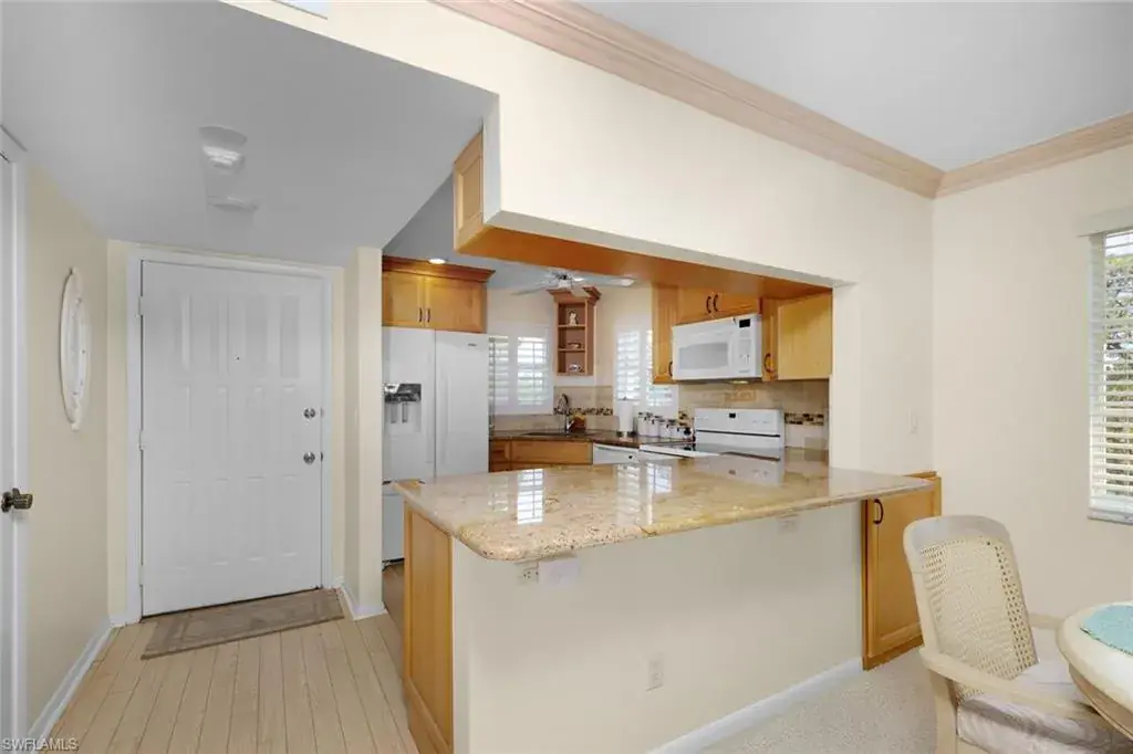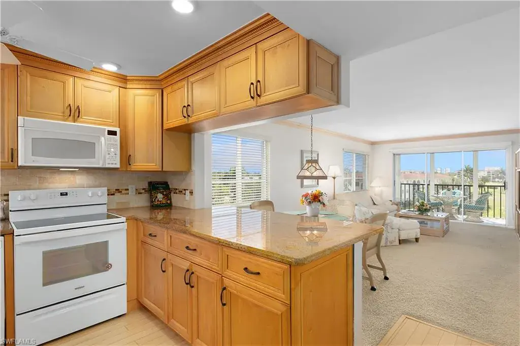 Enjoy stunning Naples sunsets from your lanai in this very desirable West facing END UNIT. Includes an IMMEDIATE GOLF membership for 2. Long view of the golf course. Let this condo serve as your vacation paradise or your full time residence. Both bathrooms and kitchen have been updated and a new hot water heater has been added. High Point Country Club has enough year round activities and amenities for your entire family. Take a leisurely bike ride to the beach. Savor all of the culinary delights that Naples has to offer. This condo is centrally located close to Park Shore and Venetian Village. This condo is a MUST SEE. NOT a 55+ building!