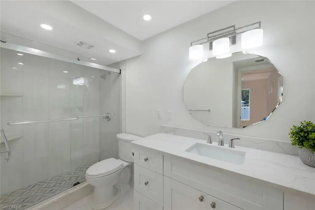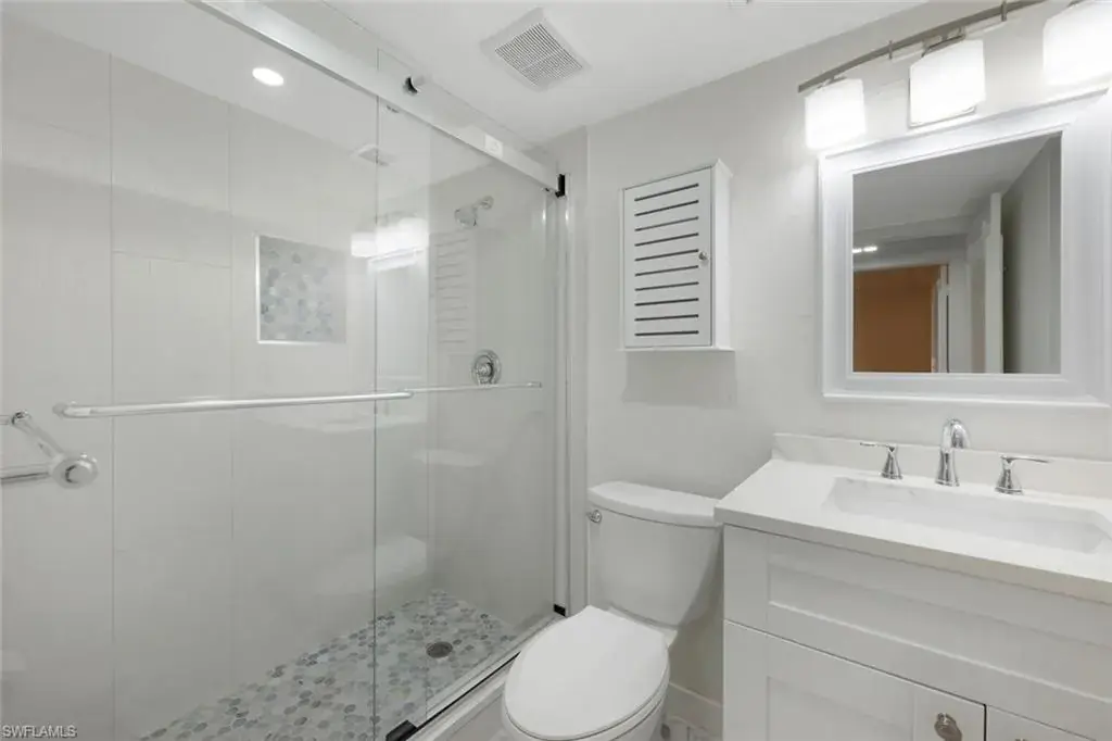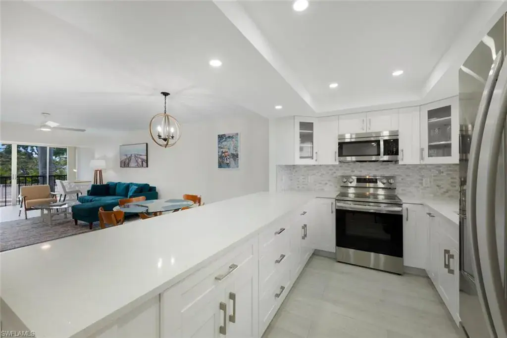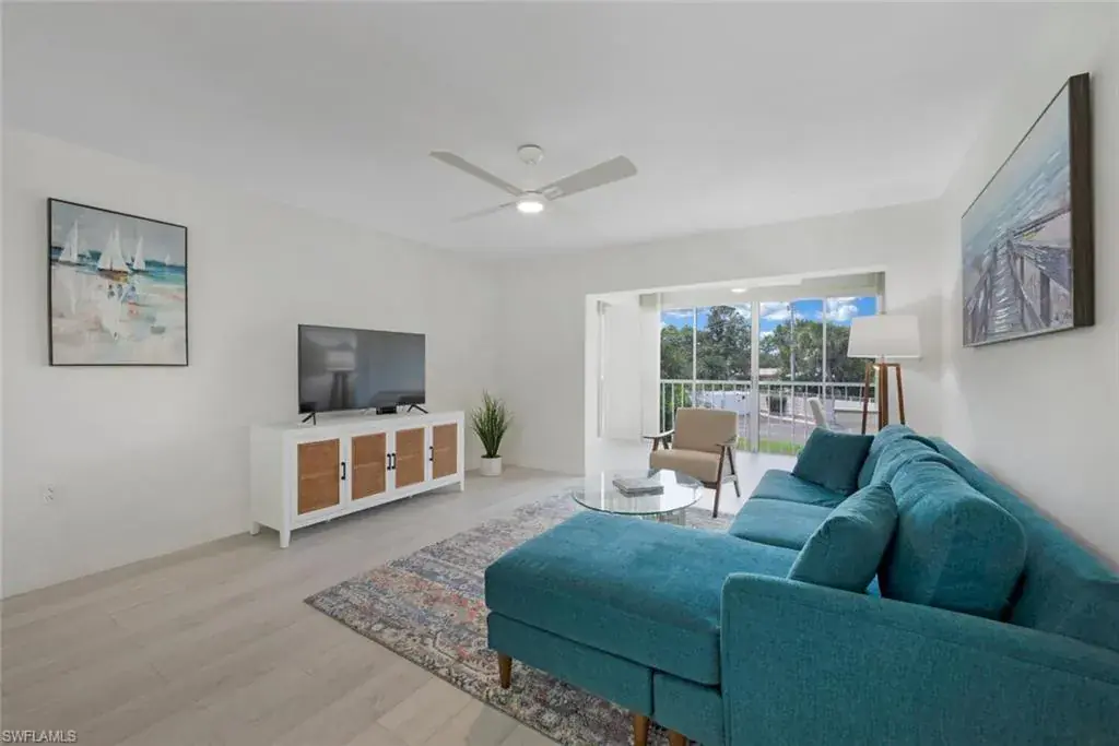 LARGEST FLOOR PLAN!! TURNKEY!! Golf membership & country club amenities, plus two assigned parking spaces, included with purchase and transferrable to renters! Fabulous investment opportunity with lease in place February, March & April 2026, for $5,500/month!! Rent up to 6 times a year, for a minimum of 30 days! Short term rentals still available, while for sale. Totally renovated, this is the largest 2 bedroom, 2 bath floor plan condo, in High Point! The enclosed triple lanai, creates much more living space than most condos in High Point CC. Featuring all white cabinetry, white quartz countertops, stainless steel appliances & ample storage space in the kitchen, bigger bathrooms with white cabinetry, white quartz countertops & glass shower doors, laundry room in residence, light colored wood-like tile throughout & furnished with blue, green & neutral color decor. There’s a storage unit next to the condo, as well as a common elevator. High Point CC is a fun, very social community, located in the Heart of Naples, close to dining, shopping, beaches, health care and entertainment.