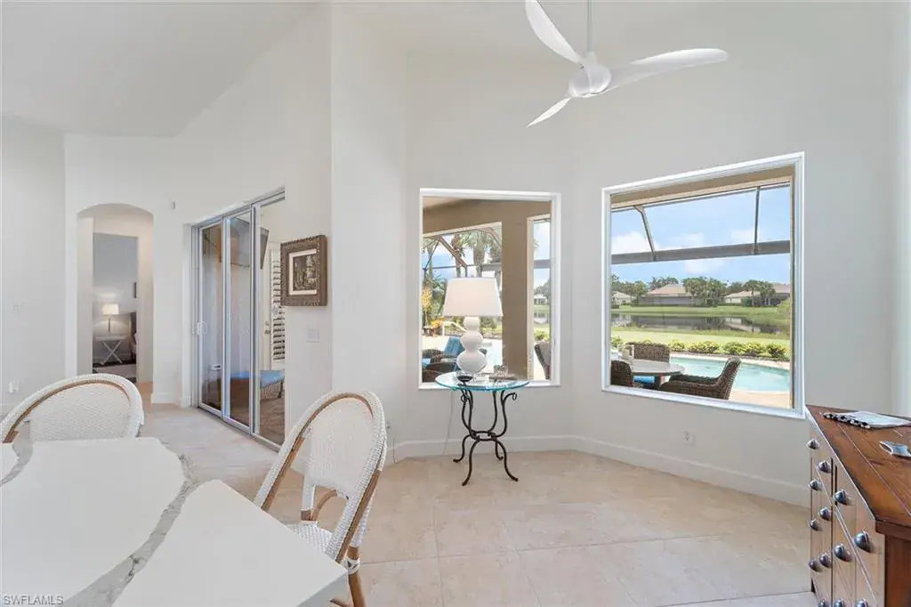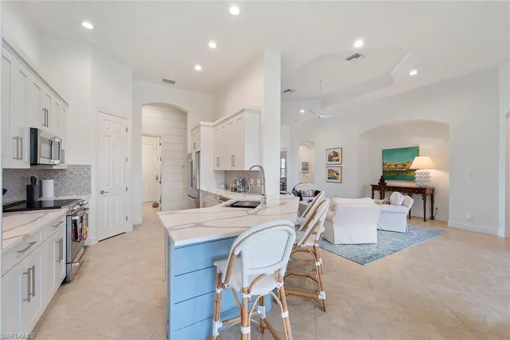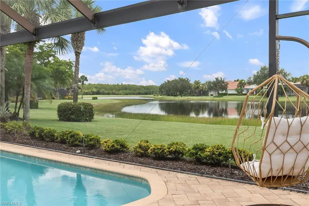 Experience the desirable TwinEagles community of Naples with two 18-hole golf courses. This single-family residence offers 2,428 square feet of thoughtfully designed living space. The open-concept floor plan showcases extensive millwork and refined craftsmanship throughout the home. The remodeled kitchen features top-tier stainless steel appliances, modern cabinetry, and ideal for casual dining and entertaining. The primary bath has been completely renovated with elegant finishes, creating a private retreat. Three spacious bedrooms and three full baths provide flexibility for family or guests. Outdoor living is elevated by a generous lanai overlooking the lake and golf course. The two-car garage adds convenience and ample storage. In a premier Naples location surrounded by two golf courses, this home combines comfort, style and exceptional views for the discerning buyer. TwinEagles residents enjoy over 1,100 acres of natural beauty, two championship golf courses The Talon by the Nicklaus Group and The Eagle Course by Steve Smyers — a new clubhouse, fitness center, resort-style pool, tennis and pickleball courts, bocce, Himalayas putting green and a tiki bar. Full golf membership is deeded to the home for immediate enjoyment.