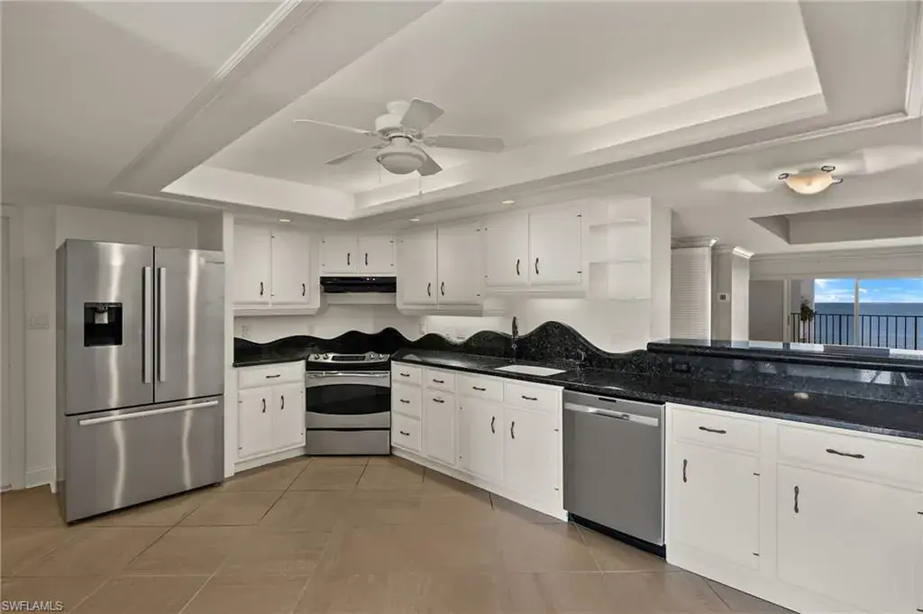 Best views of sunrise and sunset in Naples at the lowest price per sq ft on the beach! Experience the epitome of coastal luxury living with this rare beachfront opportunity, offering over 3,500 sq ft of exquisite living space. This Horizon House penthouse condominium features four spacious bedrooms and four full bathrooms, providing ample space and comfort for you and your guests. Marvel at the unparalleled beachfront views showcasing breathtaking sunsets over the Gulf of Mexico, as well as stunning vistas of the bay and the city skyline. The expansive Western covered lanai offers direct beach views, while the East-facing covered lanai is perfect for entertaining, featuring an outdoor kitchen complete with a grill hood venting to the roof. Enjoy the coastal breeze and panoramic scenery from the comfort of your home. Indoors, the residence exudes elegance and sophistication. Relax by the cozy fireplace and admire the blend of imported, antique French parquet and tile flooring. The updated and expansive kitchen boasts new appliances, a wine cooler, and natural stone countertops. Two large master suites, each with their own master bathrooms, offer ultimate comfort and privacy. An oversized owner’s closet provides ample storage space. Noteworthy upgrades include two new air handlers and a new water heater. Horizon House has recently undergone a dramatic transformation, featuring renovated common areas, pool deck, fitness center, and a game room. All electric and galvanized piping throughout the building have been updated. Milestone inspection has been completed, and no special assessments have been identified for future owners.Located minutes from 5th Avenue South and within walking distance to the shops and dining at Venetian Village, this property offers the true Naples coastal lifestyle of luxury and tranquility. Don’t miss the chance to own this exquisite seaside retreat, where every day feels like a vacation.