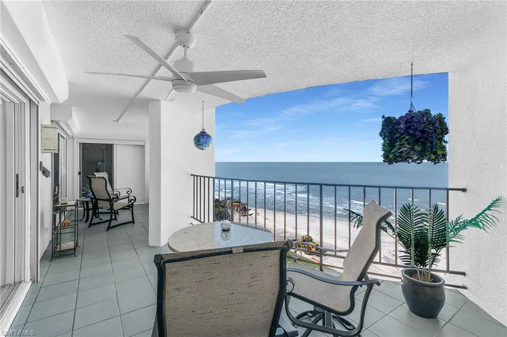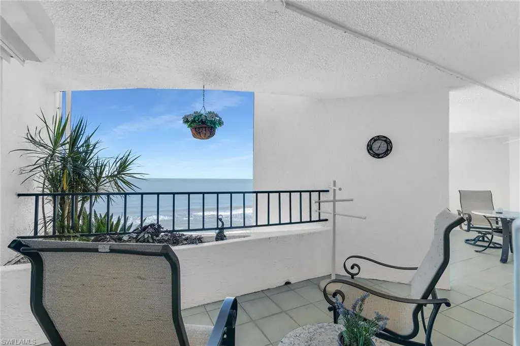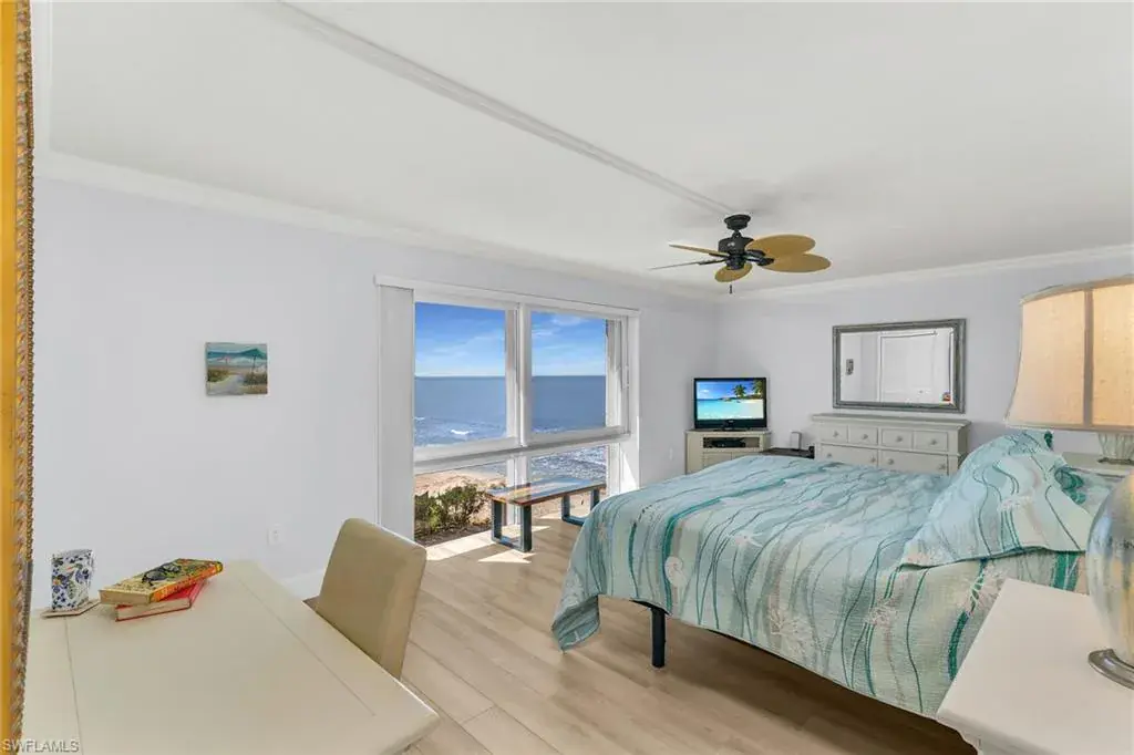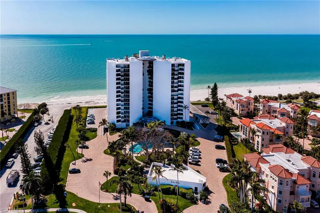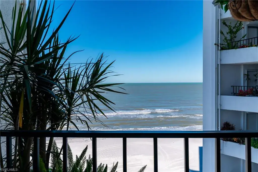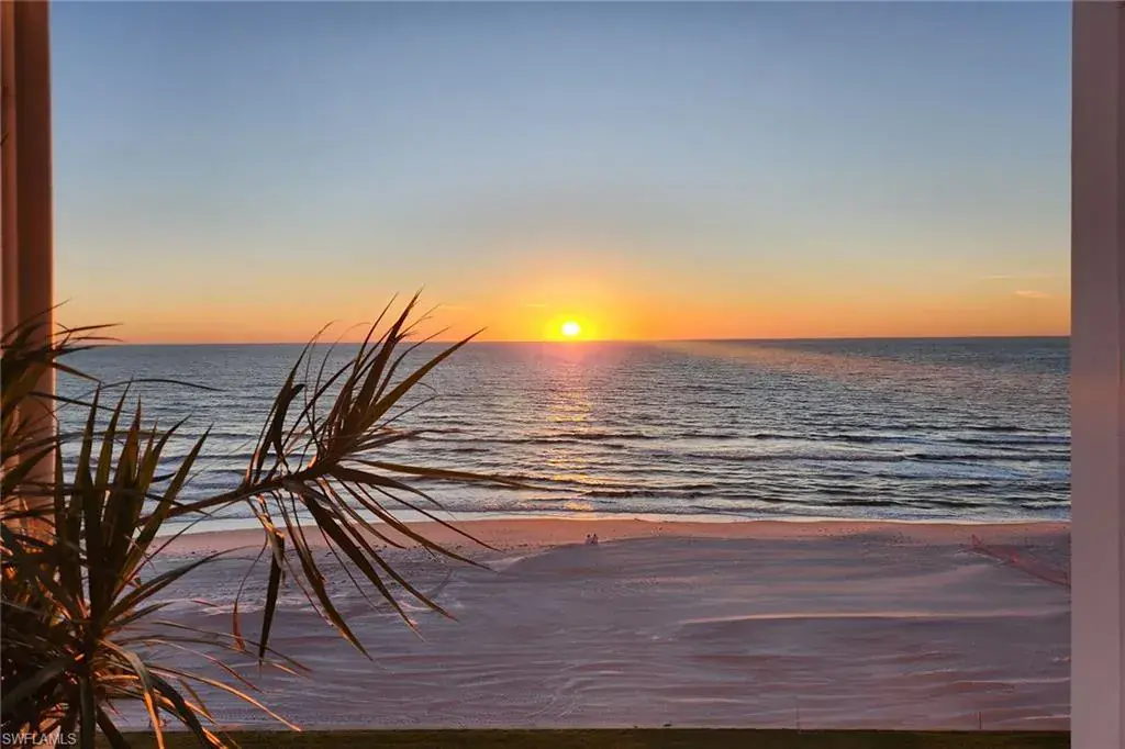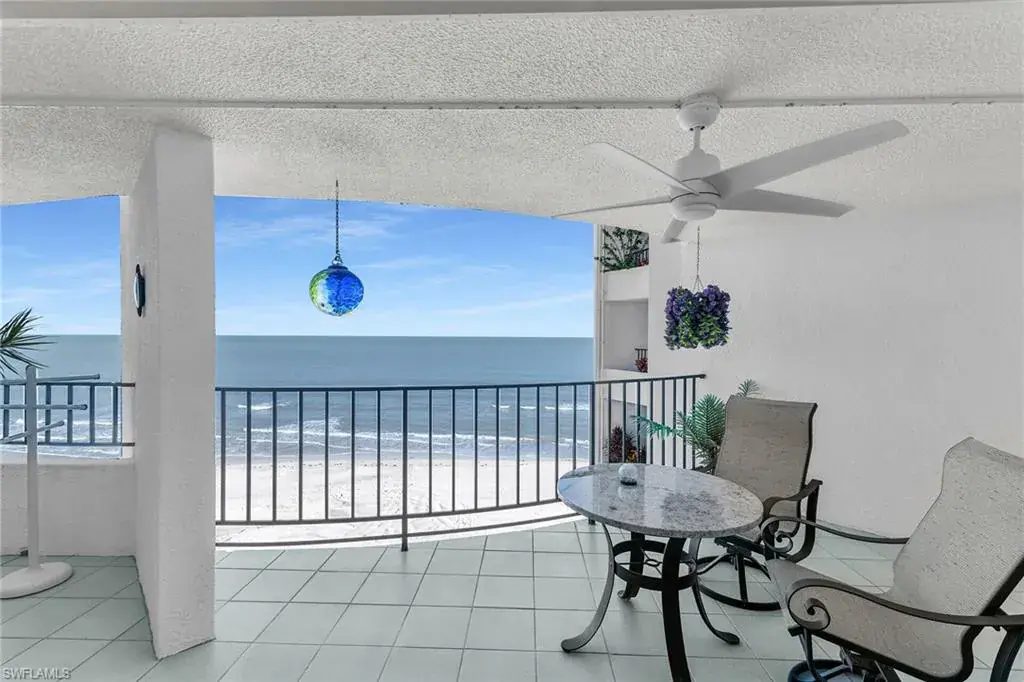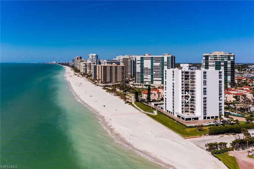 Rarely Available! This is your opportunity to own an incredible beachfront residence with unobstructed views of Park Shore beach. This coastal retreat is fully turn-key furnished and completely remastered with an open-concept design, blending coastal contemporary style with modern living functionality. A 300+ square feet covered balcony and multiple floor-to-ceiling impact windows showcase spectacular sunsets and all-day beach vistas. The newly reimagined spaces create an airy, sophisticated ambiance with light Pasadena Oak flooring, remote-controlled blinds, custom bar and entertainment area, a 54-bottle dual-temperature control wine chiller, bar fridge, bar storage, and luxurious fixtures and finishes. The kitchen features high-end Samsung black stainless appliances contrasting beautifully with light quartz countertops and white shaker and glass-front cabinetry. Both baths have been tastefully updated with new cabinetry and countertops. The primary bath is stunning with granite counters and walls and tons of storage. Amenities include a community room and library, fitness room, sauna, bike storage, game room, and an outdoor kitchen area, under-building covered parking and extra storage. Residents have direct access to the beach and the promenade, and nearby Venetian Village shopping and dining.