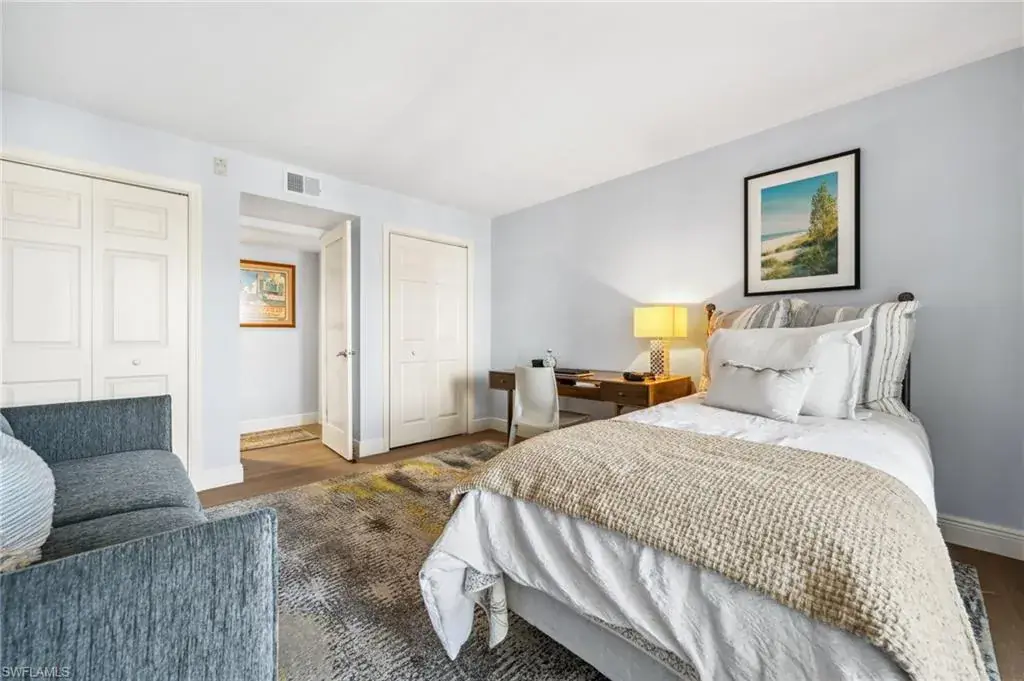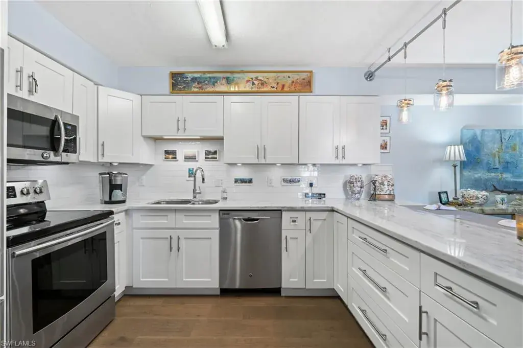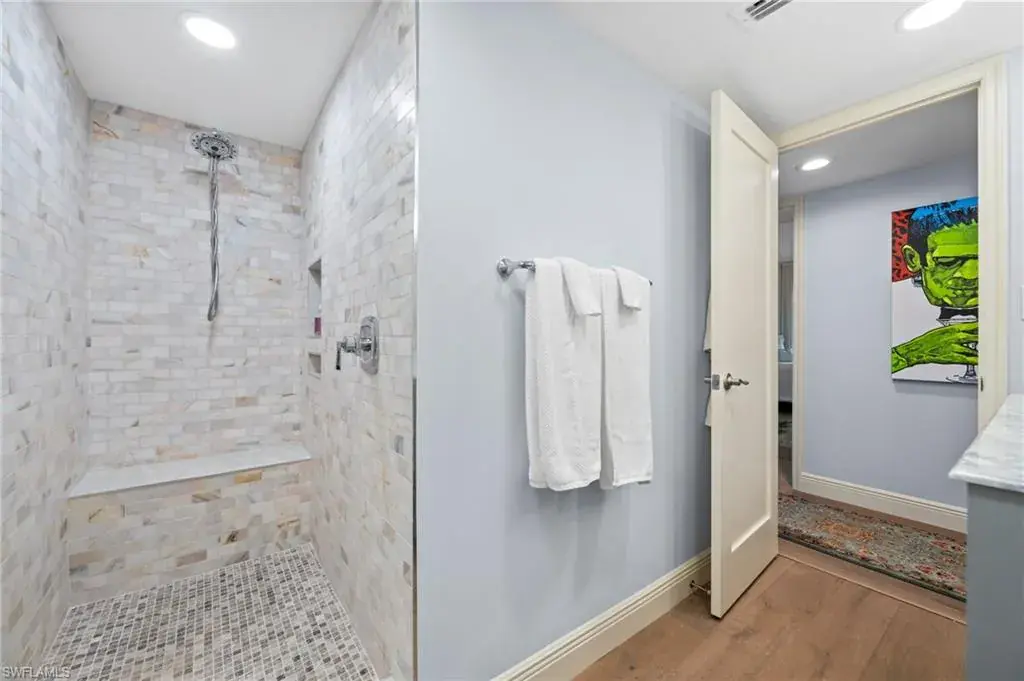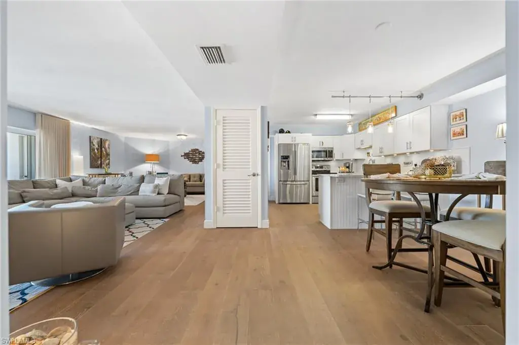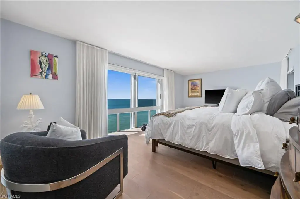 ** “Toes-In-The-Sand” Lifestyle** – Introducing this gorgeously RENOVATED Beach Condo at Horizon House. Discover your beachfront oasis in this stunning two-bedroom, two-bathroom condo, perfectly situated on the famous Park Shore beach. Wake up with dolphins & pelicans and immerse yourself in the colorful sunsets from both your balcony and primary bedroom. With a prime location just steps away from the sparkling sands, this condo is ideal for those who desire the ultimate coastal lifestyle. Step inside to find coastal wood flooring, an updated kitchen featuring white shaker cabinets, natural stone counters, and stainless steel appliances. Both bathrooms have been thoughtfully modernized, offering a fresh and inviting atmosphere for relaxation. The Horizon House is walking distance to the vibrant Venetian Village featuring some of Naples best restaurants with a view and boutiques. Safety and comfort are paramount, with hurricane shutters installed for peace of mind during storm seasons. Whether you’re looking for a primary residence or a seasonal getaway this beach condo offers it all. NEW HVAC system + water heater. Horizon House’s elevation limits hurricane impact and the required Milestone study and all required engineering has already been completed.