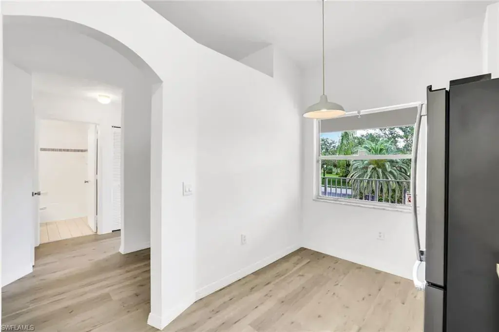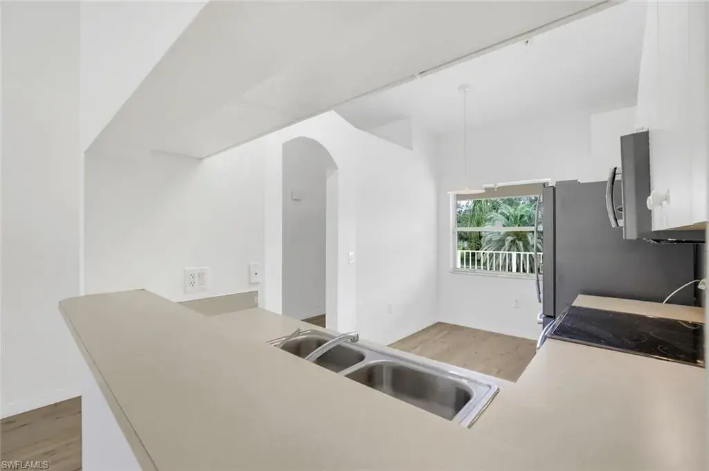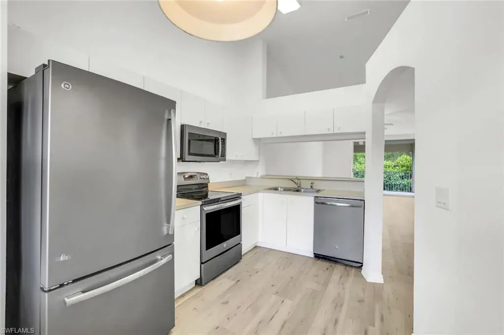 Naples living at a price you’ll love! This beautifully updated 2-bedroom, 2-bath second-floor condo, with balcony, offers a serene private treed view and the added elegance of a cathedral ceiling, available only on upper-level residences. Inside, you’ll find new flooring, fresh paint, and stylish ceiling fans, while the kitchen shines with stainless steel appliances and a convenient pass-thru to the dining area for effortless entertaining. An added bonus with this unit is the concrete carport with tile roof!