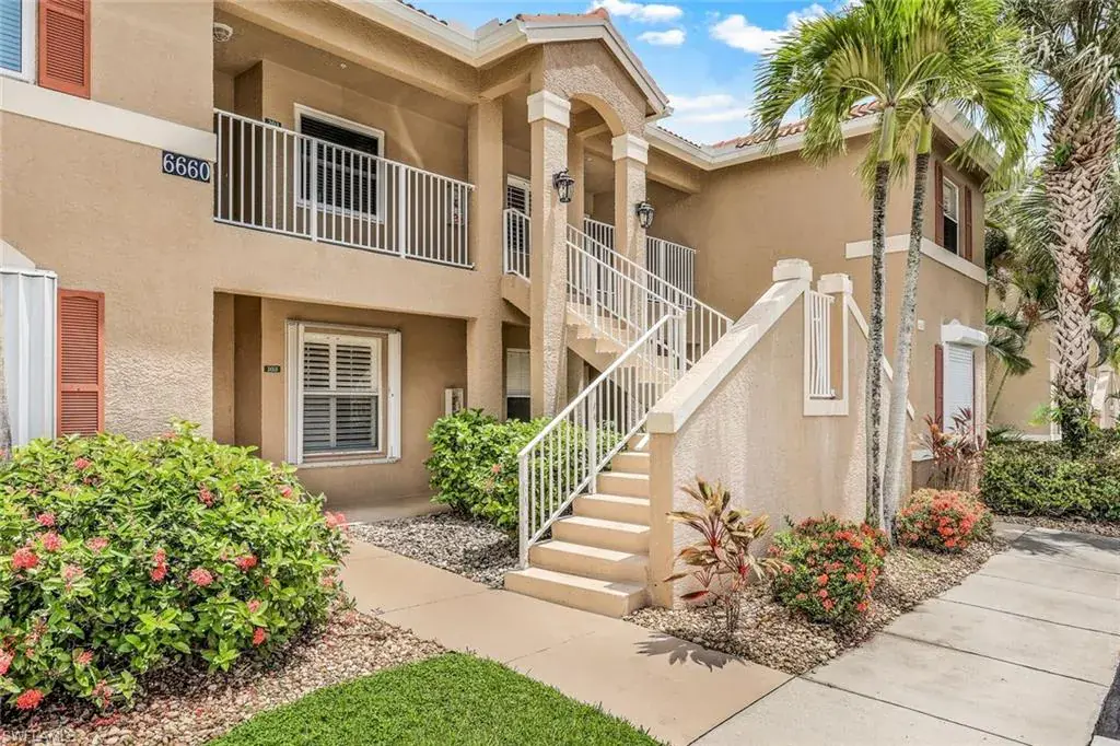 The updated kitchen makes cooking fun, featuring sleek shaker cabinets and stylish quartz counters. Gorgeous wood and tile flooring throughout the home, complemented by elegant plantation shutters on every window. The high ceilings and elevation above the trees makes this space light and bright and everything you love about Florida living. Relax in the luxurious master suite, showcasing a recently renovated en-suite bathroom. Rest easy knowing the AC was replaced in 2020 and the building’s roof in 2020. This home also includes a rare dedicated enclosed garage for your convenience. Immerse yourself in the coveted North Naples lifestyle, with easy access to I-75, top-rated schools, and an array of shopping and dining options right out your door. Don’t miss this opportunity to own a meticulously maintained condo in a prime location